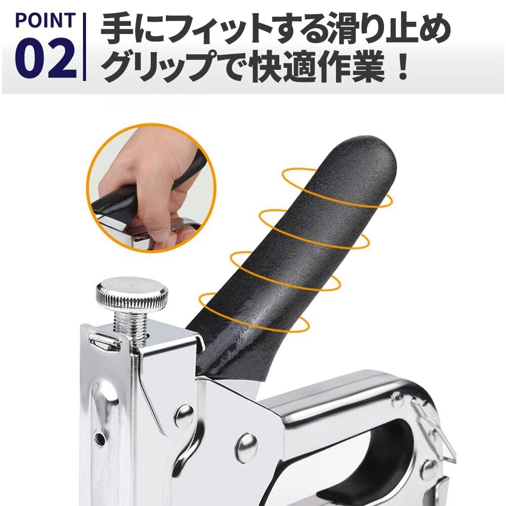 【強力固定でしっかり打ち込む!】木材や布地へのしっかりした固定が可能。DIYからプロの現場作業まで幅広く対応できる万能タイプで、安定した打ち込みが特長です。持ちやすい設計で、力をかけやすく効率の良い作業をサポートします。