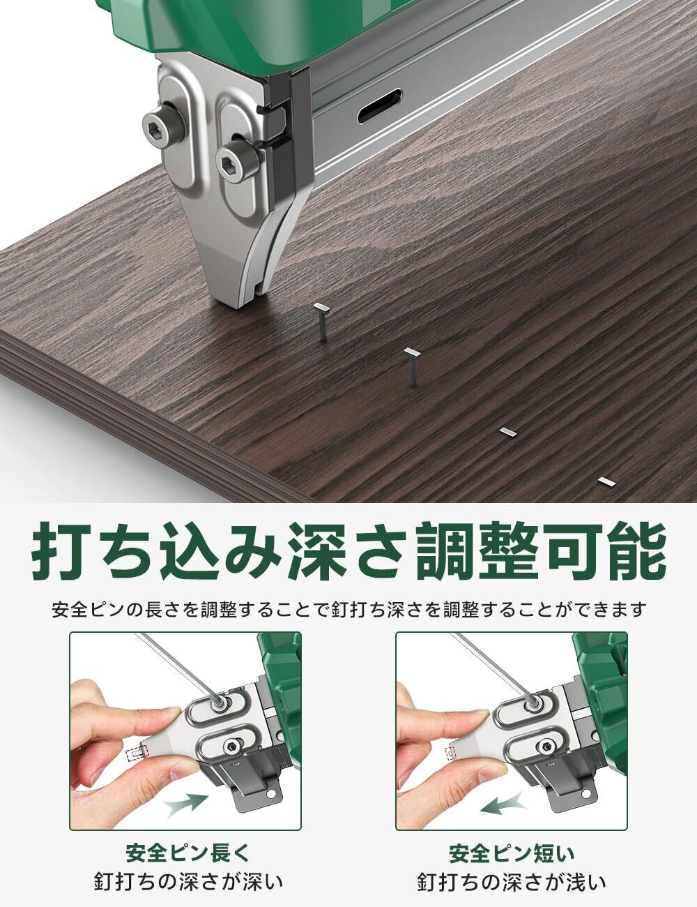 【打ち込み深さ調整機能付き|ガンタッカーで素材に応じた柔軟対応】KIMOのガンタッカーは、素材に応じてピンの打ち込み深さを調整できるため、さまざまな材質に対応する高い汎用性を持っています。安全ピンの長さを簡単に設定し直すことで、柔らかいソフトウッドから硬い合板、プラスチック、金属下地付きボードまで、確実な固定が可能です。この機能により、現場での作業効率が大幅に向上。複数の工具を持ち替える必要がなくなり、時間と手間を節約しながらも高品質な仕上がりを実現します。特に家具製造やインテリア工事、DIYなど、細かい調整が求められるシーンにおいてガンタッカーの真価を発揮します。この高性能ガンタッカー一台があれば、さまざまなプロジェクトをスピーディかつ正確に進めることができます。多様な素材・用途に対応する柔軟性と使いやすさを兼ね備えたKIMOのガンタッカー。あなたの現場を、もっとスマートに、そして効率的にサポートします。