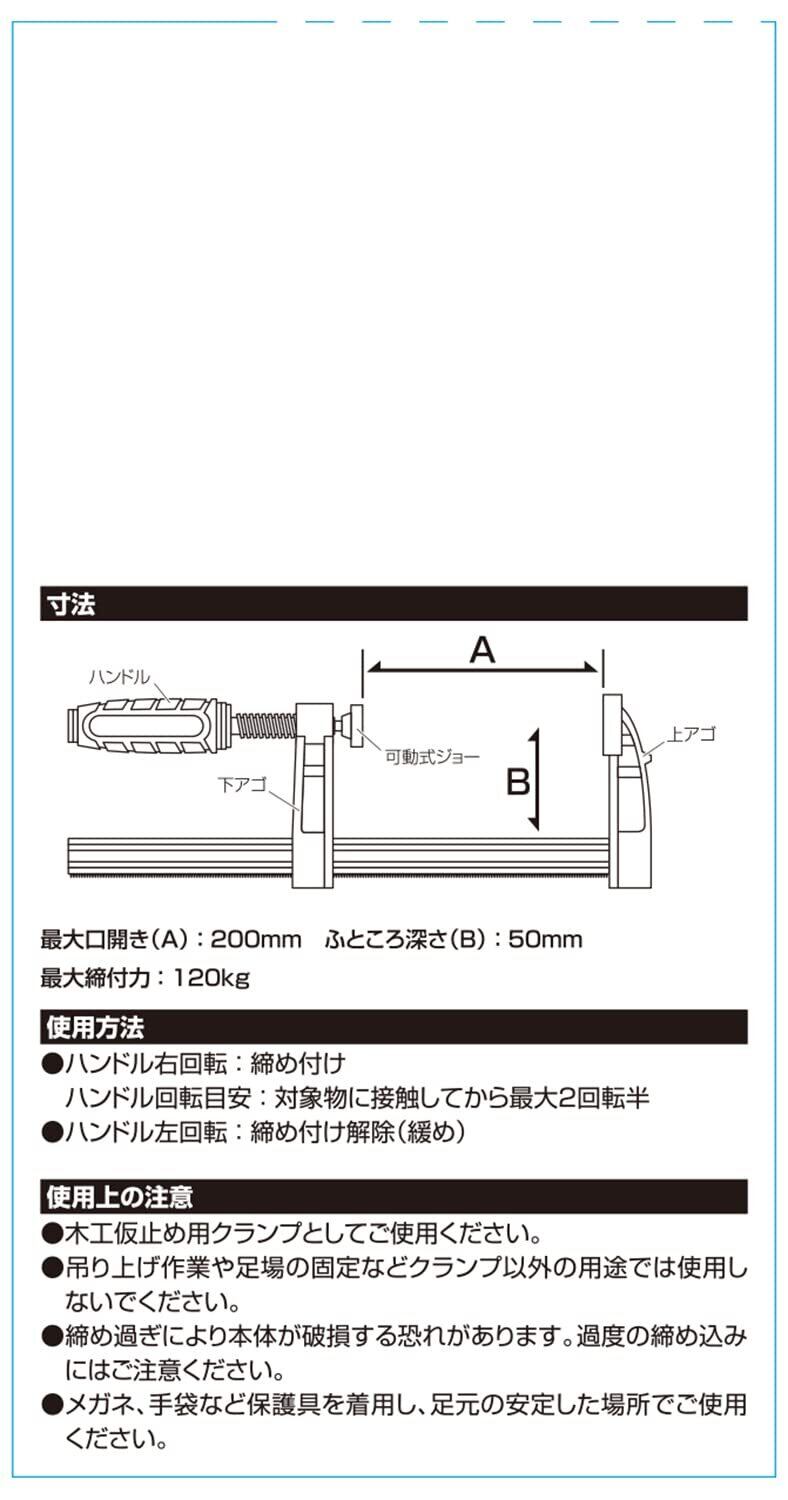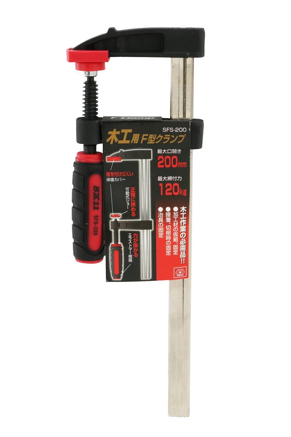 SK11(エスケー11) F型クランプ 最大口開き200mm ふところ深さ50mm 最大締付力120kg SFS-200