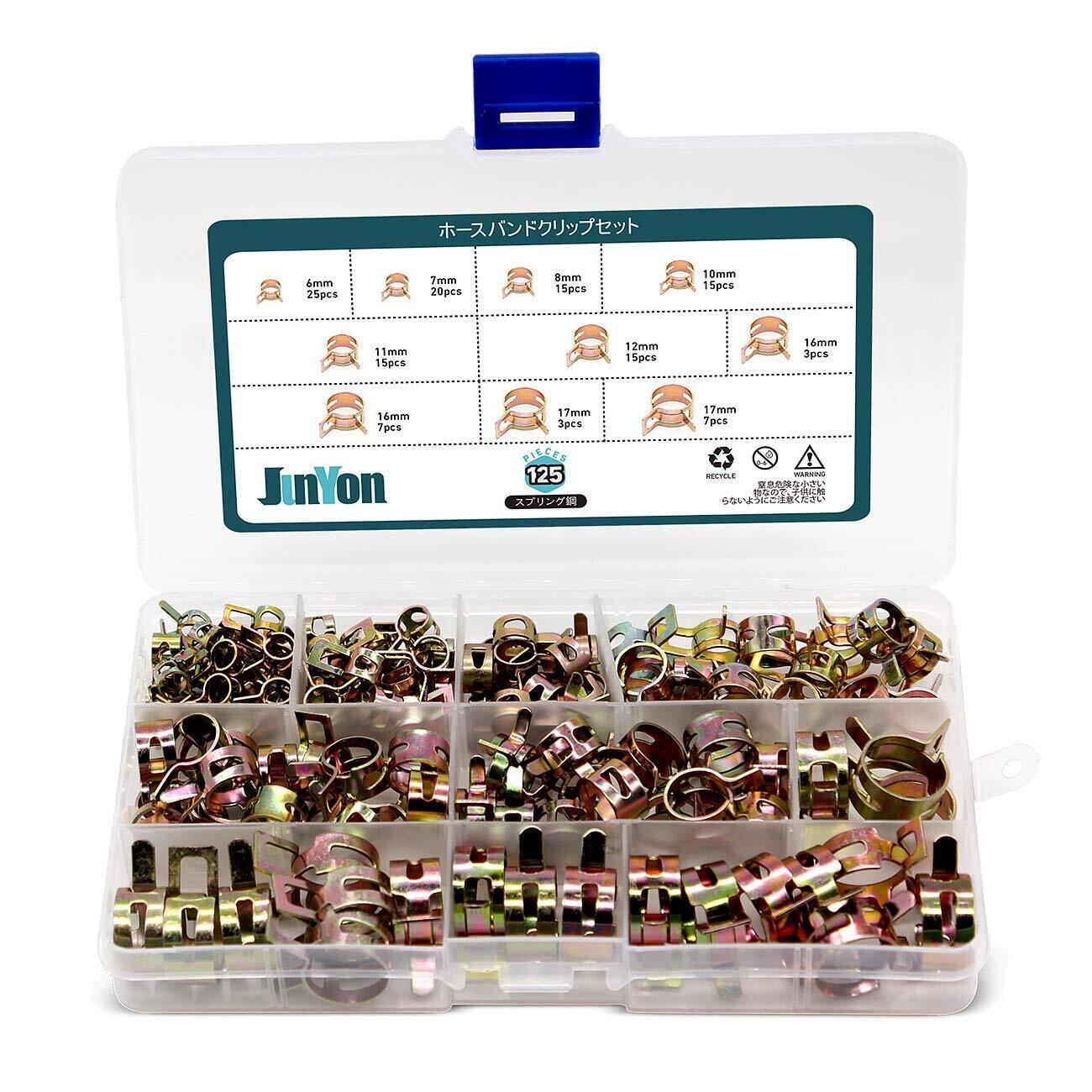 JUNYON スプリングクランプ ホースバンドクリップ ホースクリップ スプリングクランプ 内径6-17mm 燃料ホース 水道ホース シリコンホース用 125枚セット 8サイズ