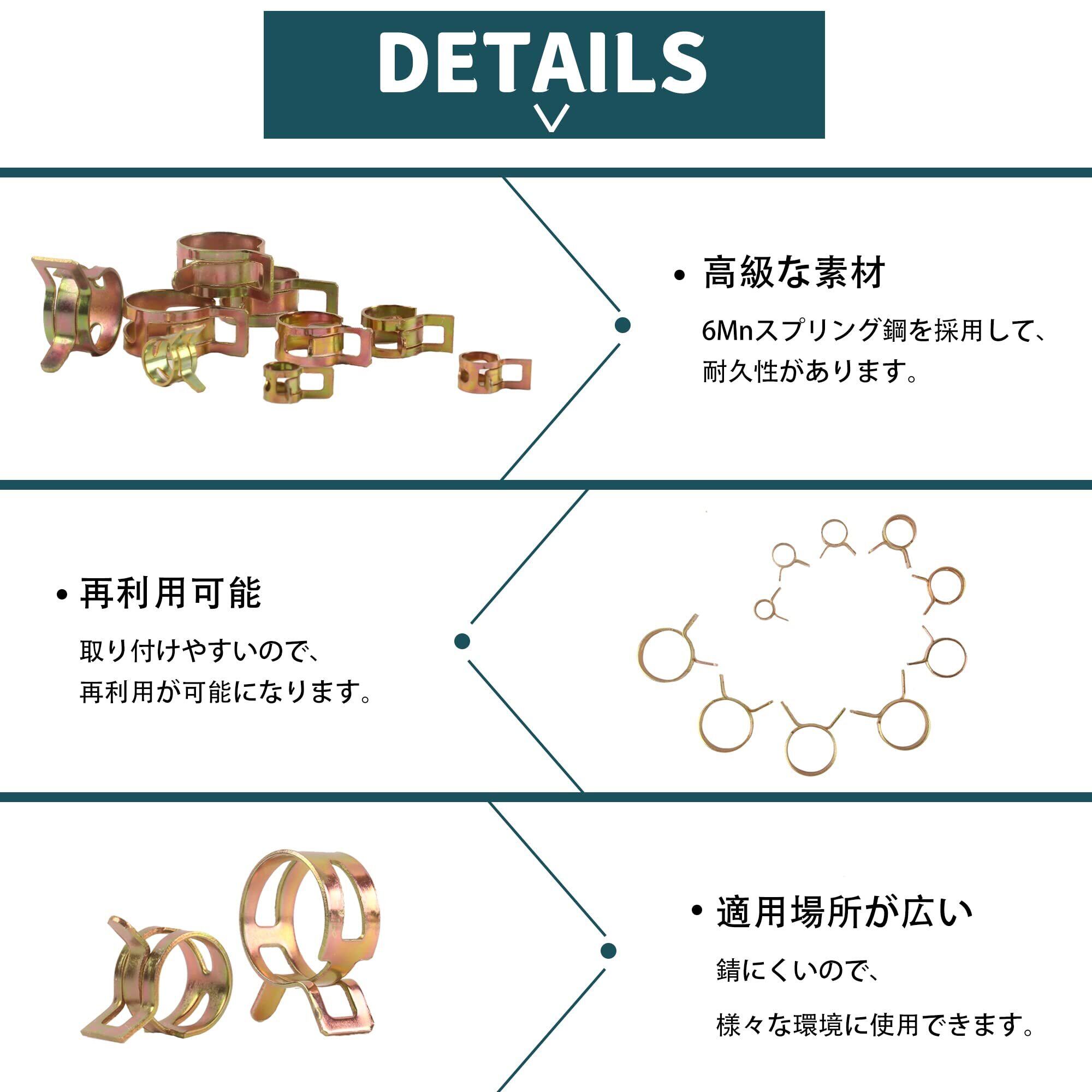 お得セット:6mm、7mm、8mm、10mm、11mm、12mm、 16mm、17mm内径合計8サイズで125枚入りなので、様々なサイズのホースに使用できるのでお得です。