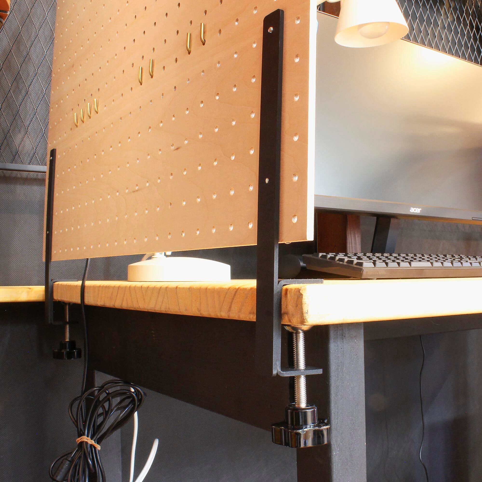 ●工具を使わずにクランプだけで「穴あきボード」を固定すことで、デスク上に収納を作れる!●机に固定するだけの簡単取り付け。●すぐ手に取れるところに穴あきボードで収納を作れば、デスクまわりがスッキリ快適。●「見せる」収納で、オシャレなデスクを作ることができます。●※ご使用の際は、和気産業㈱の「穴あきボード」をご使用ください。●穴あきボードをデスクに固定する際に