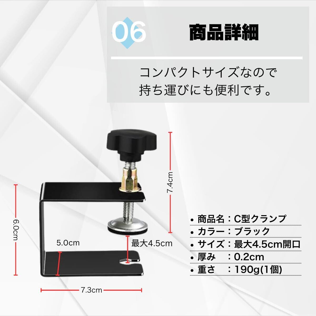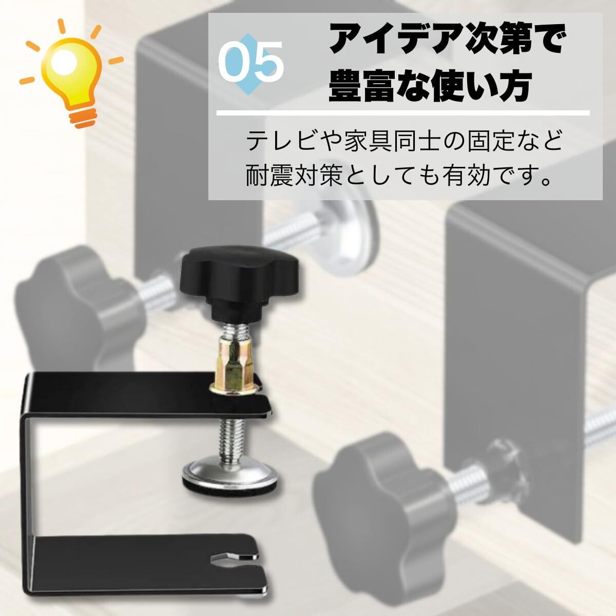 HINH c型クランプ シャコマン 固定金具 耐震対策 家具固定 クランプ C型 デスク キャビネット 作業 万力 DIY 調節可 ブラック (4個セット)