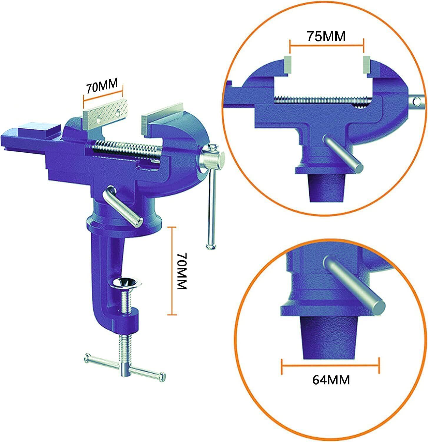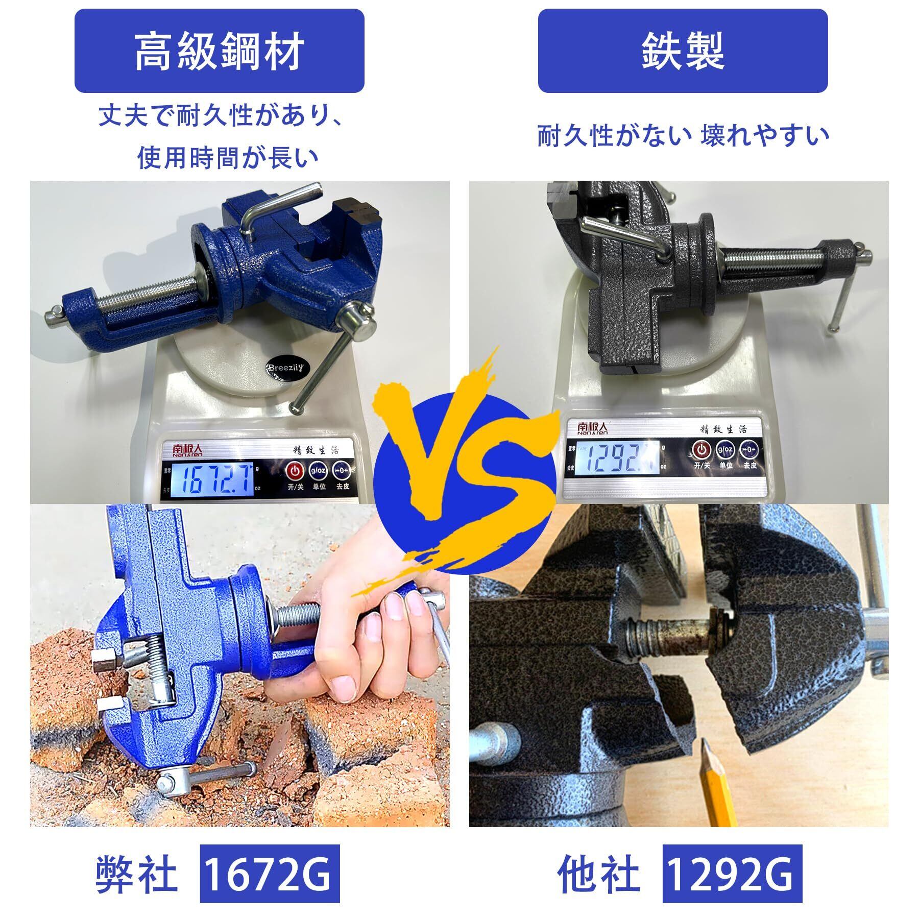 最大開口75mm 小型卓上万力 360°回転盤付き ベンチバイス クランプ 鋳鋼製 鋳鉄ではありません 携帯用作業台 木工 導管 穴あけ 金属加工