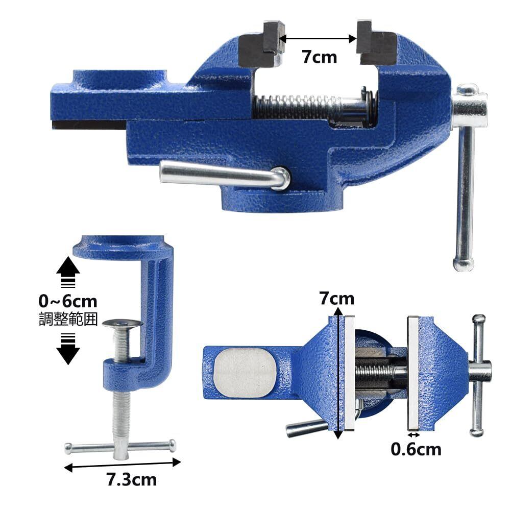 Eastbury 万力 卓上 回転式 口幅約70mm 最大開口約75mm クランプ部開口0~65mm 回転盤360°回転 切削 研磨 切断 金工作業での固定や加工 接着 強力 作業台 卓上 テーブル 締め 工具 ホビーや日曜大工、工作などに最適 | KSショップ