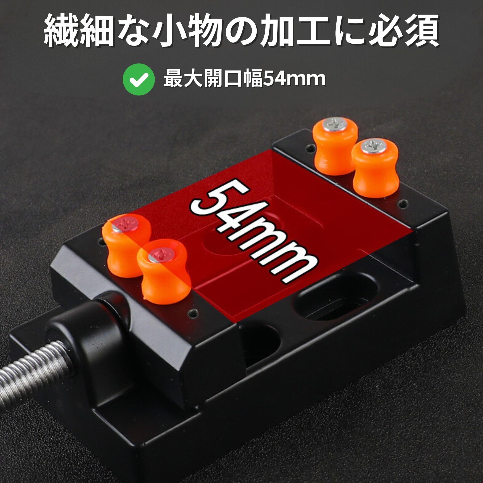 (細かい作業を快適に)この小型卓上ミニ万力は、コンパクトな設計で、作業台や机上での細かい作業に最適です。サイズは約11cmの長さ、6cmの幅、3.5cmの高さで、最大固定幅は54mmです。宝石加工やアクセサリー制作、彫刻、ガレージキット製作など、精密な作業をサポートします。