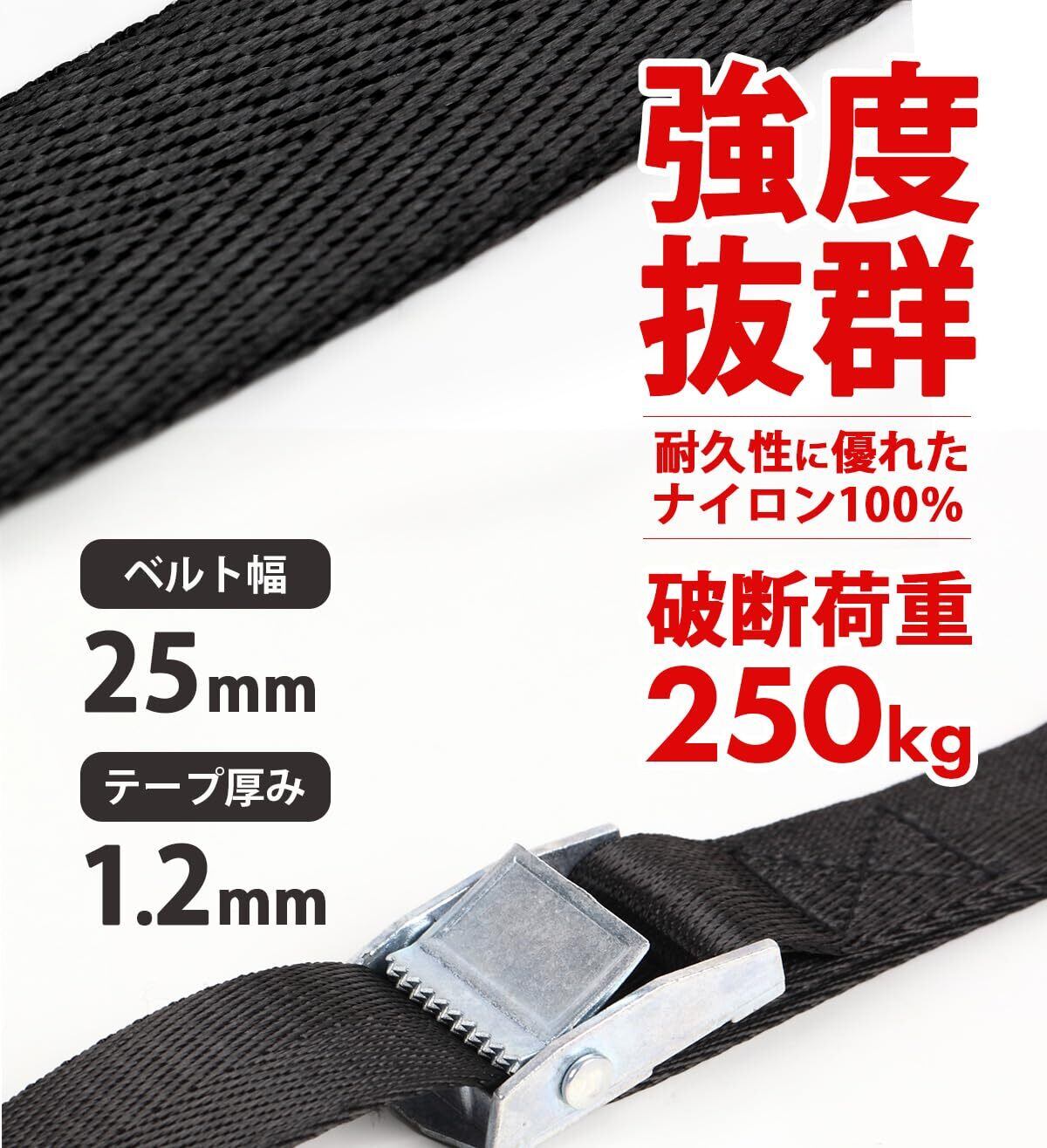 Dellepico 荷締めベルト 固定ベルト 結束バンド 最大使用荷重100kg 荷締バンド 梱包 固定バンド 地震対策グッズ 2m 3m 4m 2本セット (2m, ブラック)