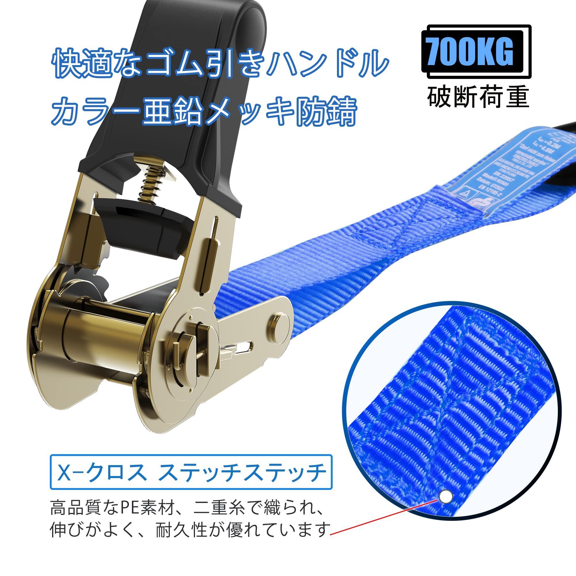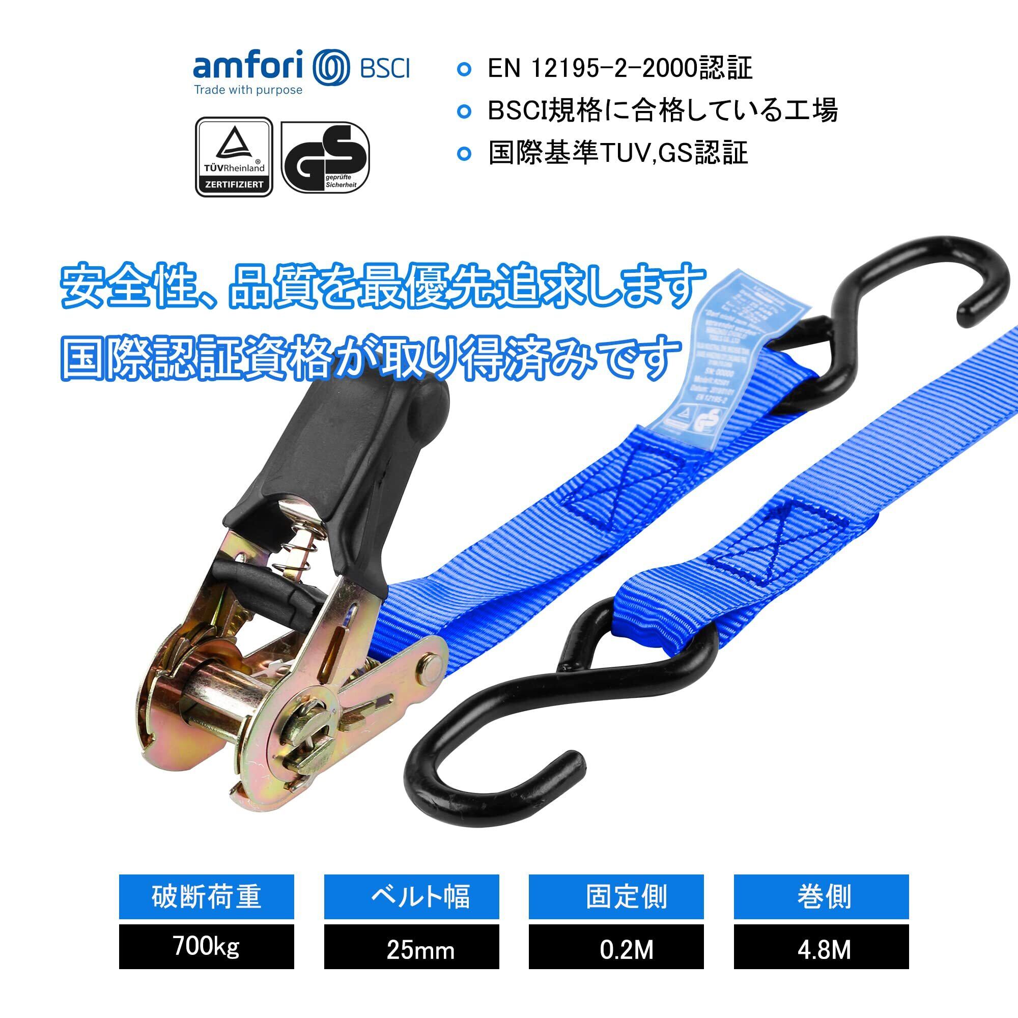 AWELCRAFT ラチェット式タイダウンベルト 破断荷重700kg GS認証取得済み 4本セット 長さ5M 荷締めベルト 幅25mm ラッシングベルト 荷締機 固定ベルト 固定バンド 締付固定 多用途 引越し 運搬用 ブルー | KSショップ