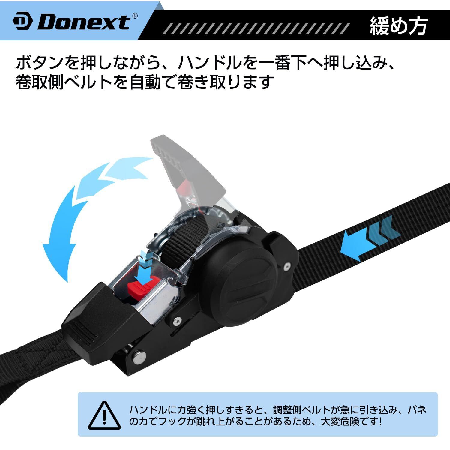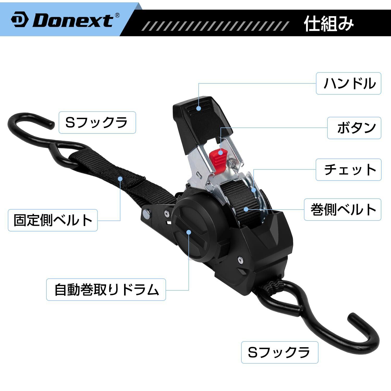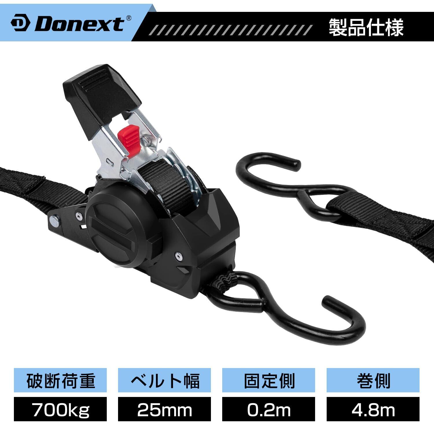 Donext ラッシングベルト ラチェット式ベルト 自動巻き取り式 Sフック 3Mx2本 幅25mm 破断荷重700kg 最大使用荷重233.3kg タイダウンベルト 荷締め 荷物固定 多用途 引越し 運搬用 ブラック | KSショップ