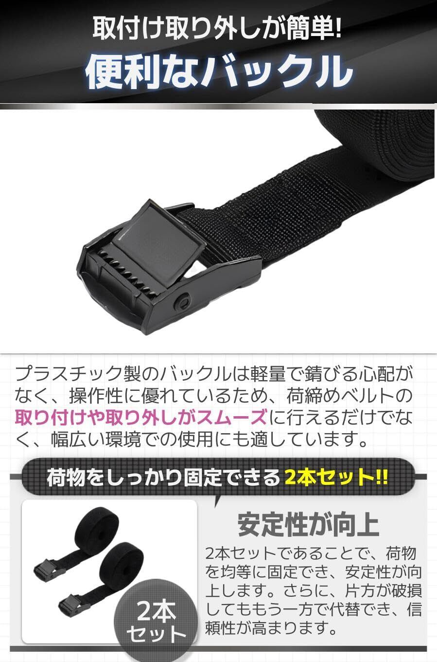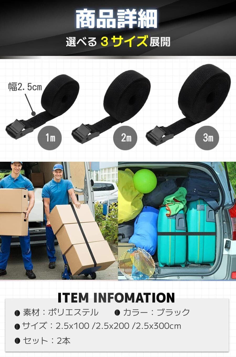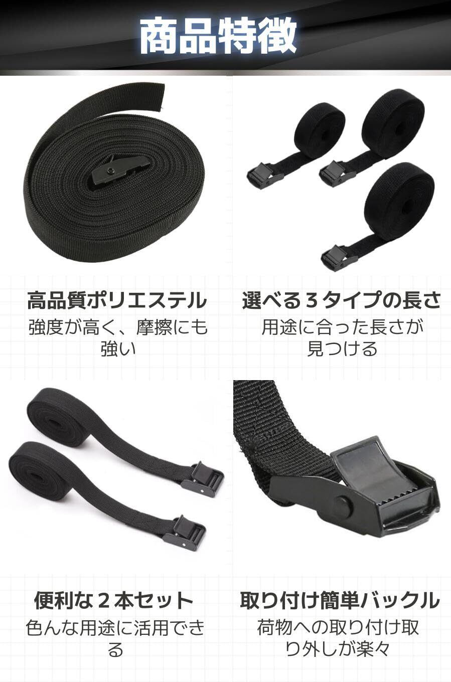 【商品特徴】①高品質ポリエステル:強度が高く、摩擦にも強い/②選べる3タイプの長さ:用途に合った長さが見つける/③便利な2本セット:色んな用途に活用できる/④取り付け簡単バックル:荷物への取り付け取り外しが楽々