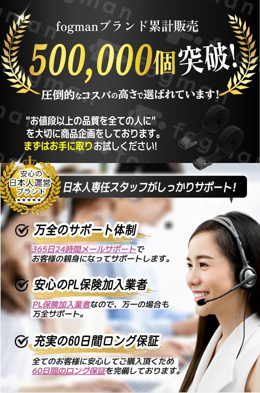 【安心の60日間返金】fogmanブランドより、迅速にお客様の元へお届けいたします。また本製品は購入から60日間の付き、万が一の際に備えてPL保険加入しております。登録第6354569号