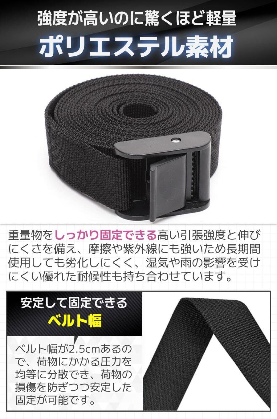 【ベルト幅】ベルト幅が2.5cmあるので、荷物にかかる圧力を均等に分散でき、荷物の損傷を防ぎつつ安定した固定が可能です。