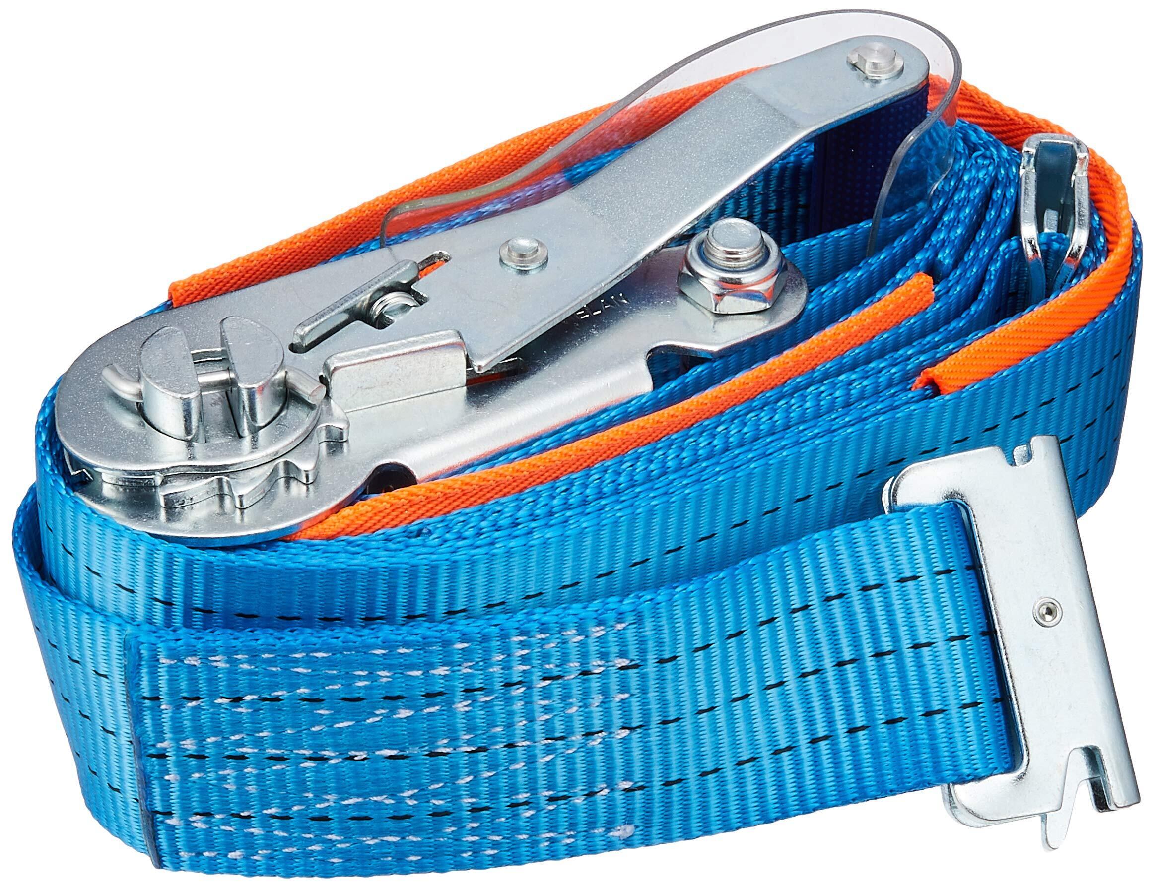 アヴィエラン(AVIELAN) ラッシングベルト 50mm幅 Rフック(トラックレール対応) 巻取 3m 固定 1.0m ブルー (右固定仕様)