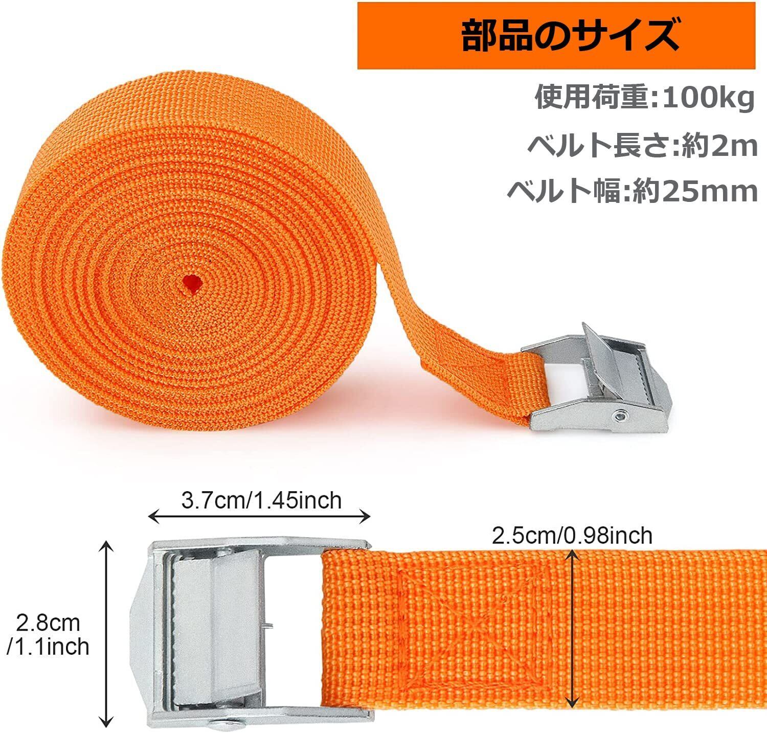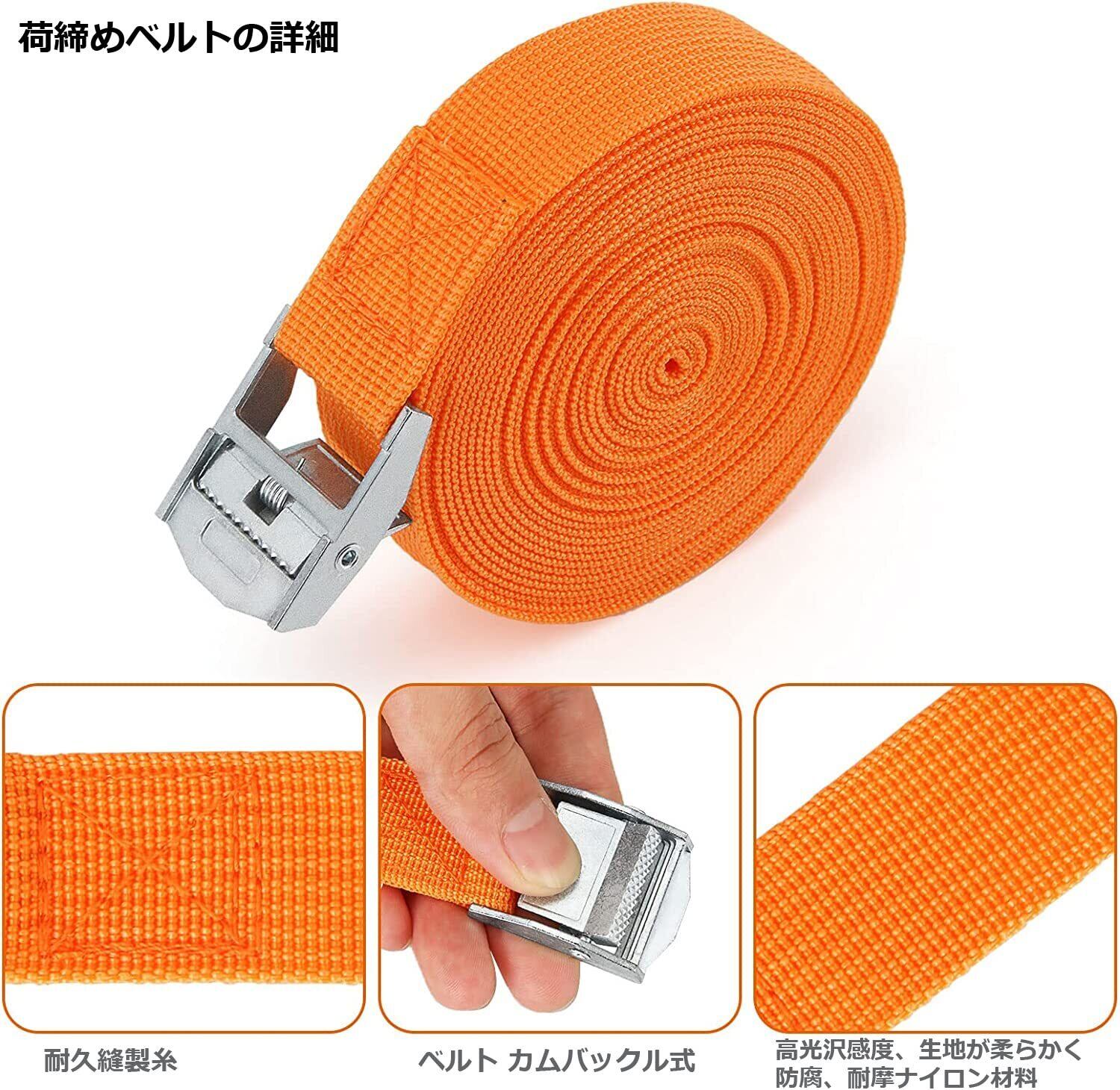 Runbod 荷締めベルト 荷物 固定 ベルト 2m 梱包/自転車/バイク 固定ベルト 幅25mm 8本セット オレンジ
