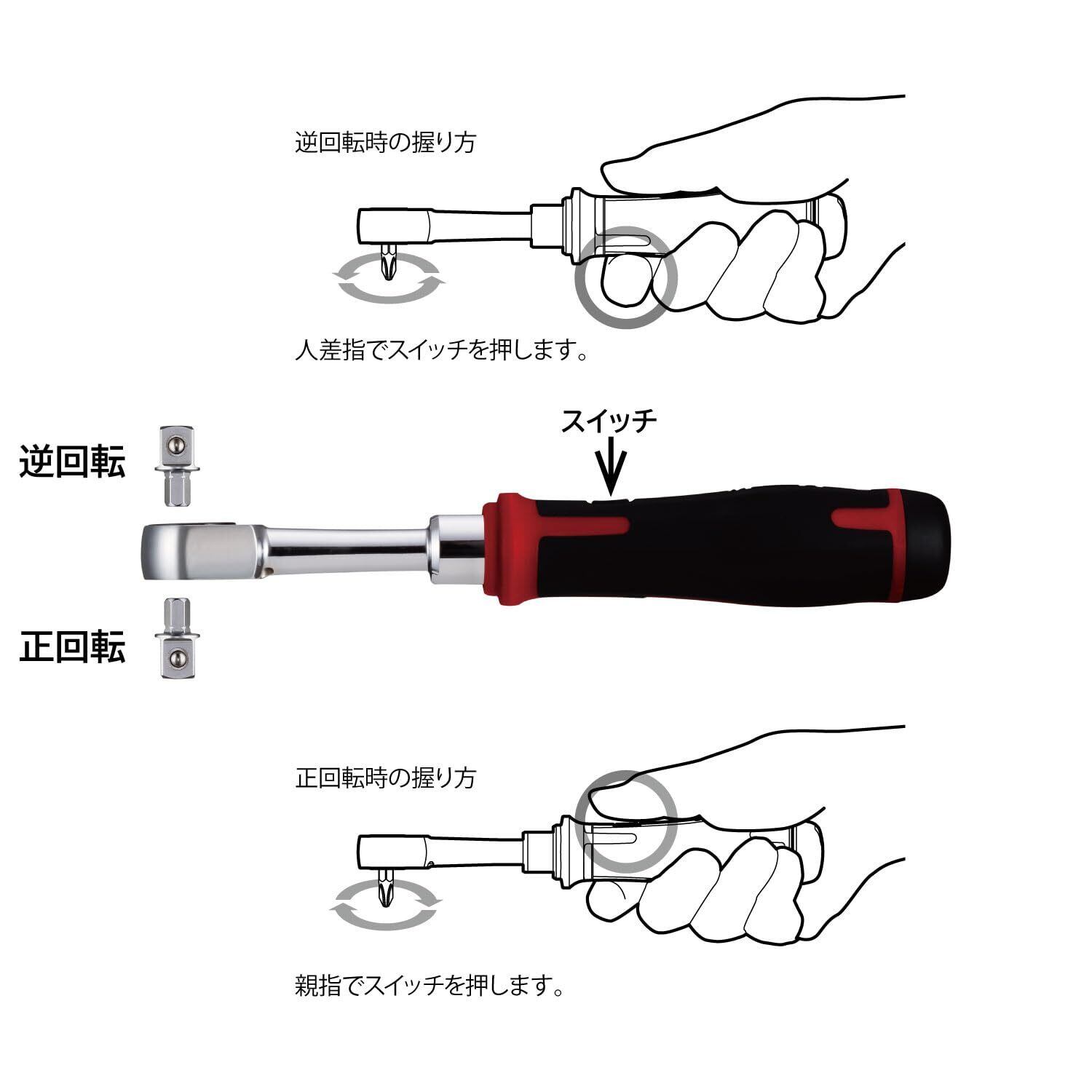 通常のラチェットハンドルと変わらないサイズで電動化。