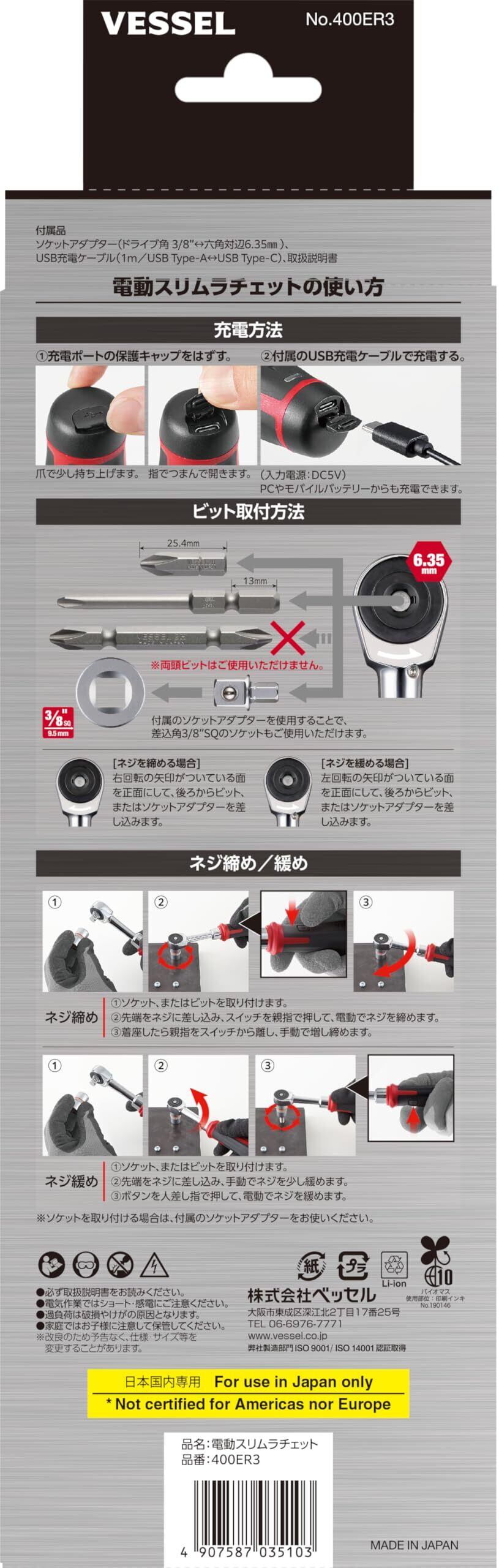 ベッセル(VESSEL) コードレス 電動スリムラチェット 400ER3