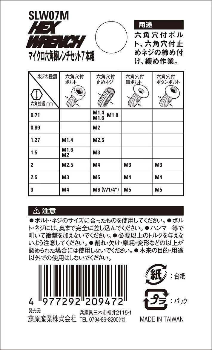 SK11(エスケー11) マイクロ六角棒レンチセット 7本組 ミリサイズ SLW07M