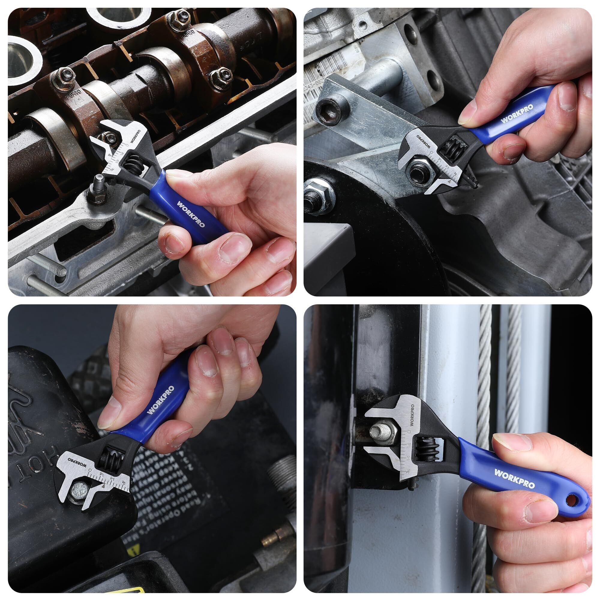 WORKPRO モンキーレンチ ミニサイズ スパナ アジャスタブルレンチ 最大口幅20mm 調整可能 目盛付き 軽量 パイプ 水栓 水道 配管 修理作業 自動車 給水装置 空調設備 建築金具 メンテナンス 全長110mm
