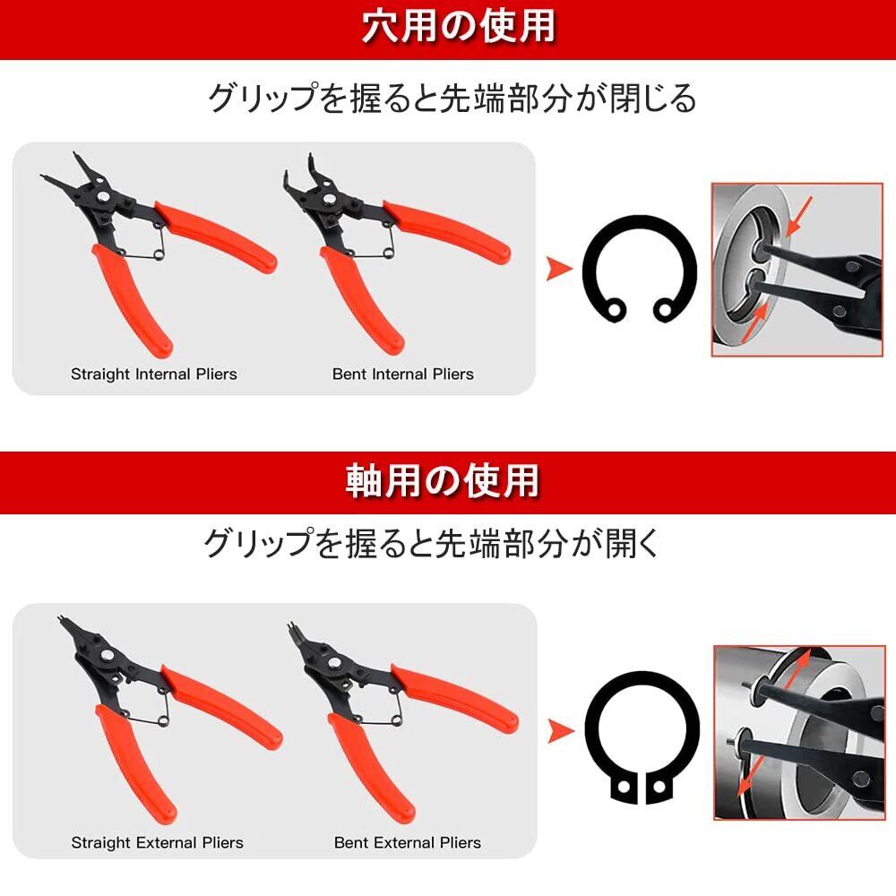 DFsuccesスナップリング プライヤー 4本セット 多角度保持リングプライヤー 内部外部サークリッププライヤー 軸・穴兼用