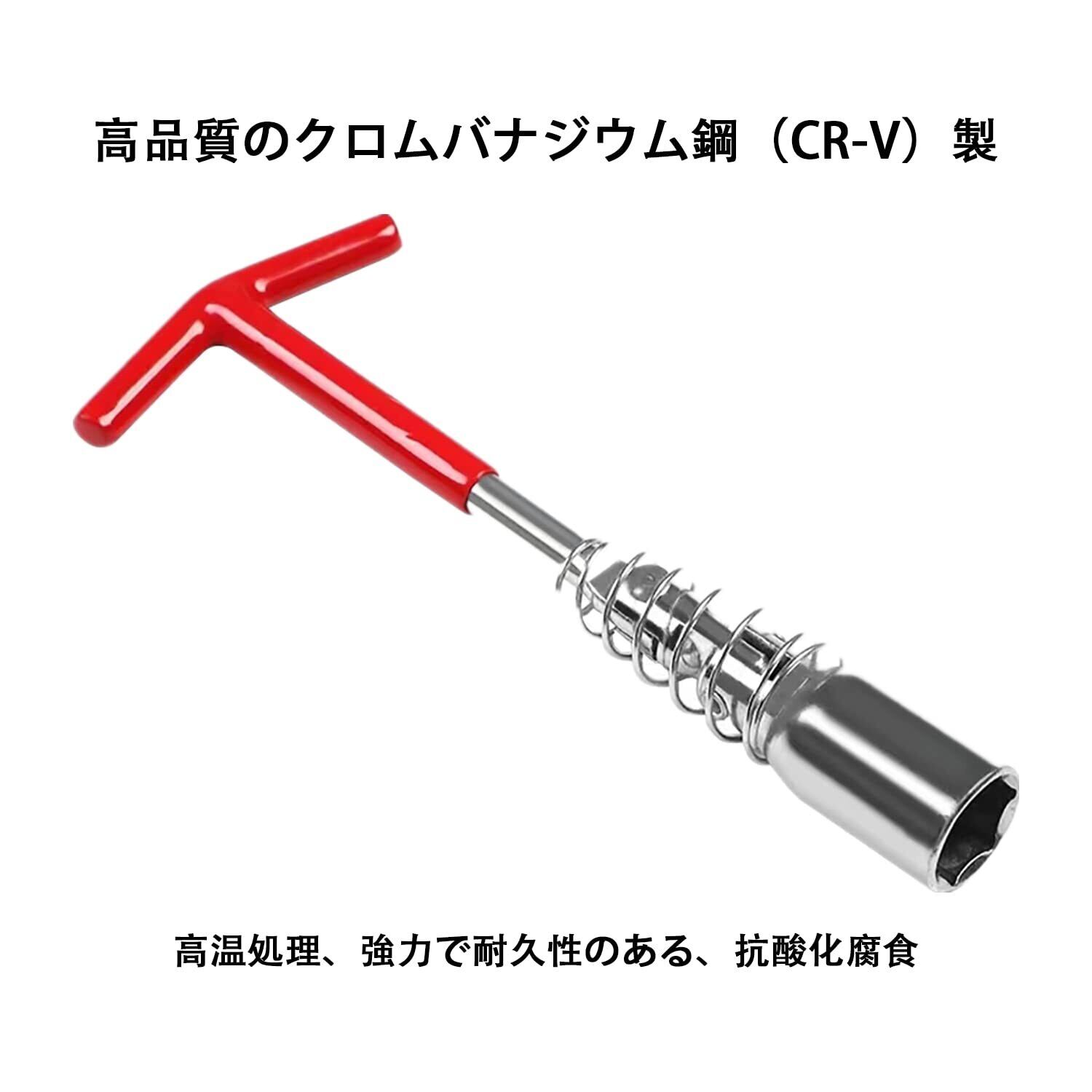 【特長】インターフェースにはラバーリングがあり、スパークプラグの傷を効果的に防ぐことができます。プラスチックで包まれたT字型のハンドルは、持ちやすく、人間工学に基づいて設計されています。