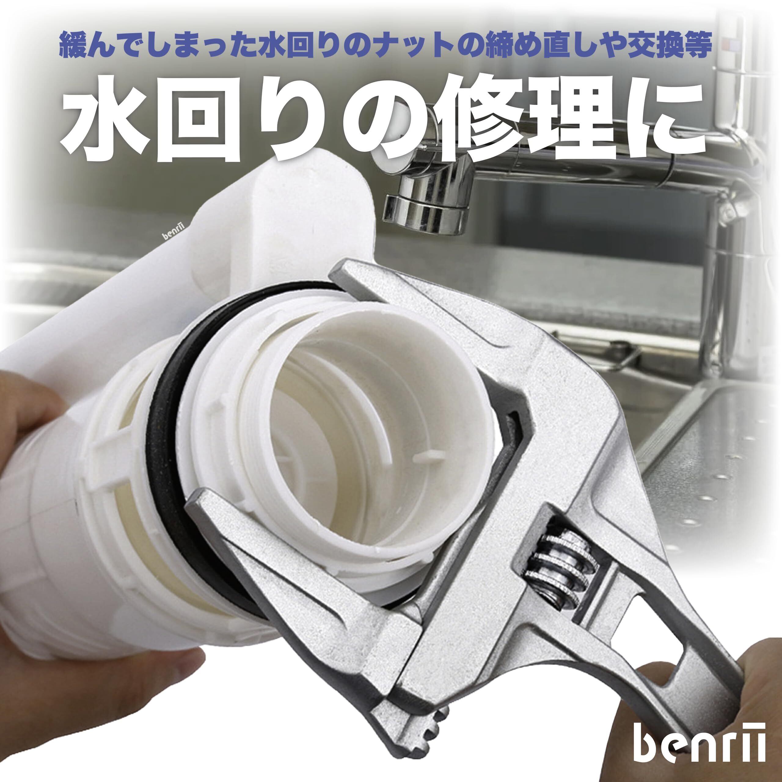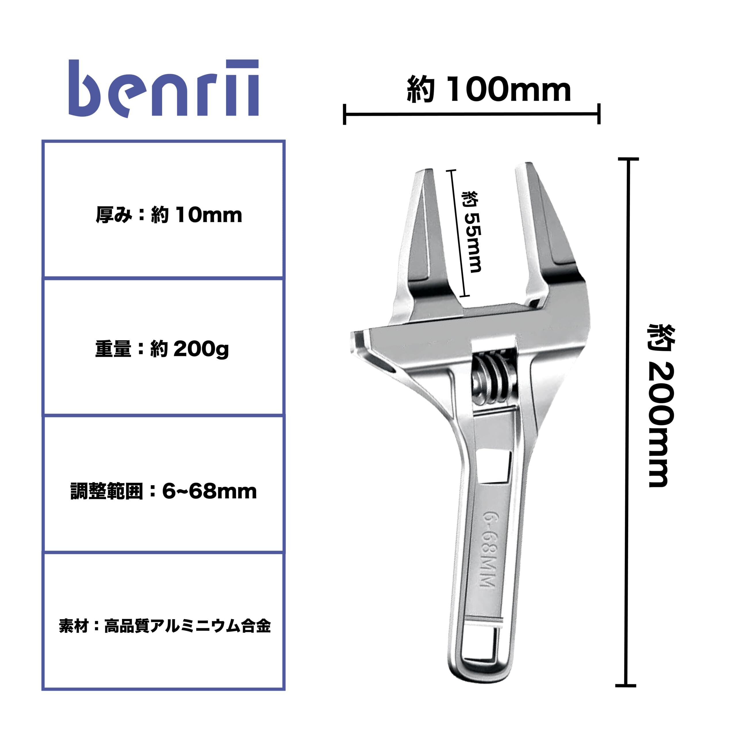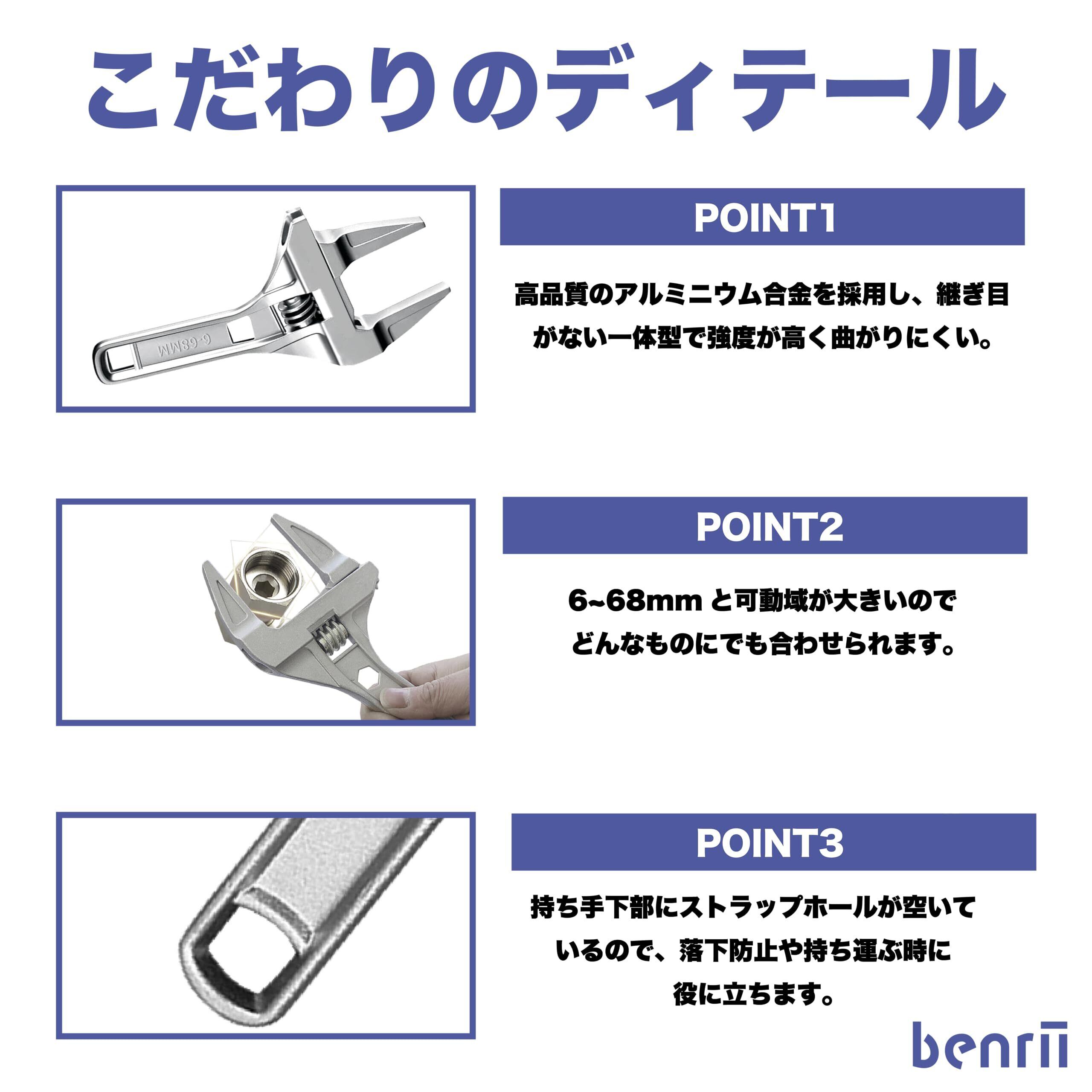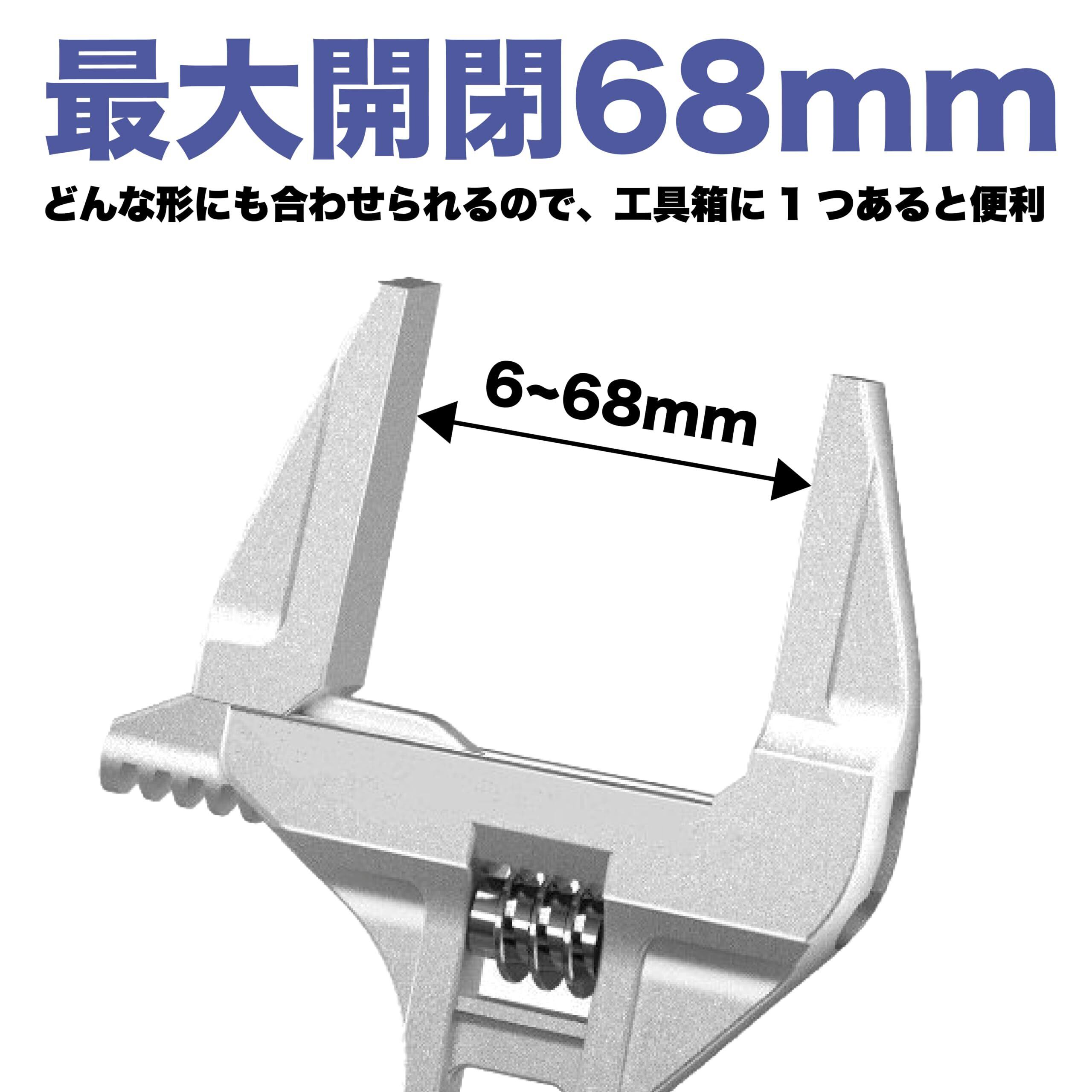 benrii モンキーレンチ ワイド 水栓レンチ 大開口 パイプレンチ 調整範囲(6-68mm) 薄型 軽量 水道管 配管 修理