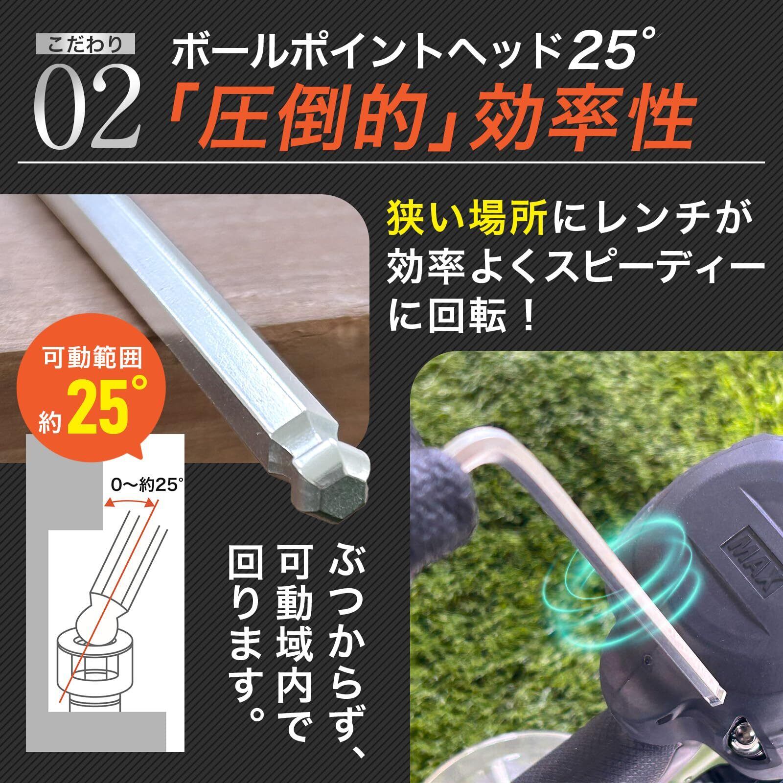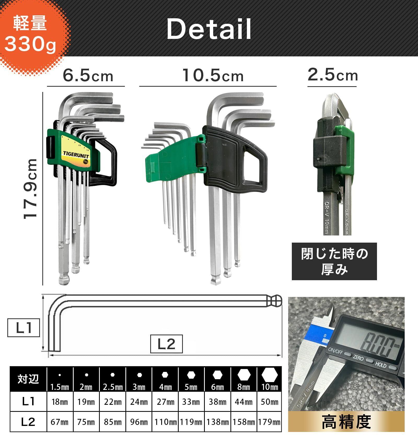 TIGERUNIT(タイガーユニット) 【取手付き】六角レンチセット 9本組 ボールポイント25°| 1.5-10mm | 防錆・高耐久・高精度 DIY・修理・機械整備・家具組立 6角レンチ ミリねじ用