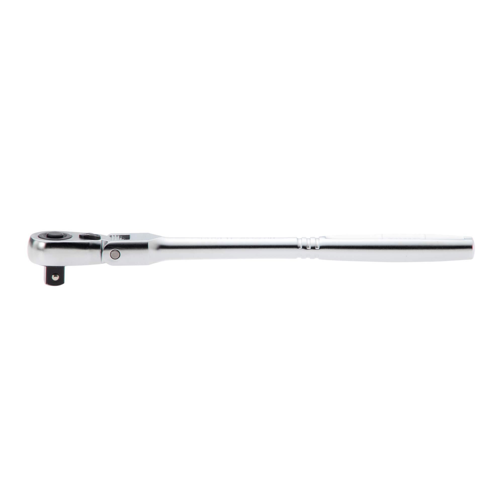 狭い場所にあるボルト等にアクセスしたい時や、スタンダードのラチェットハンドルでは作業が困難な振り幅が制限される狭い場所でも新しい首振ラチェットハンドルは、15°づつで角度調整可能な新機構を追加し、ロスなくスムーズな連続作業ができます。