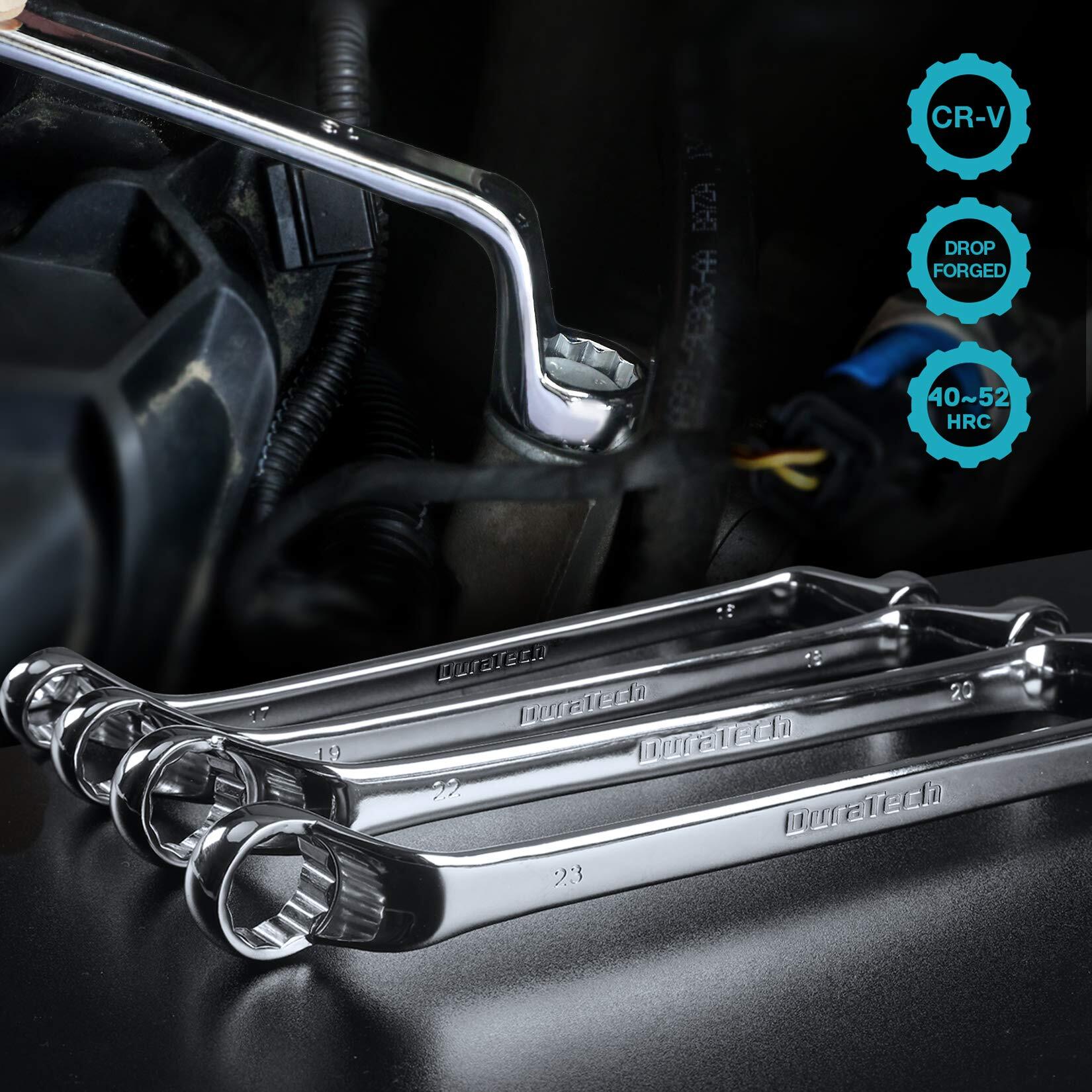 DURATECH メガネレンチセット ミリサイズ ディープオフセット ミラー仕上げ 75° 6~23mm 収納袋付 9本組