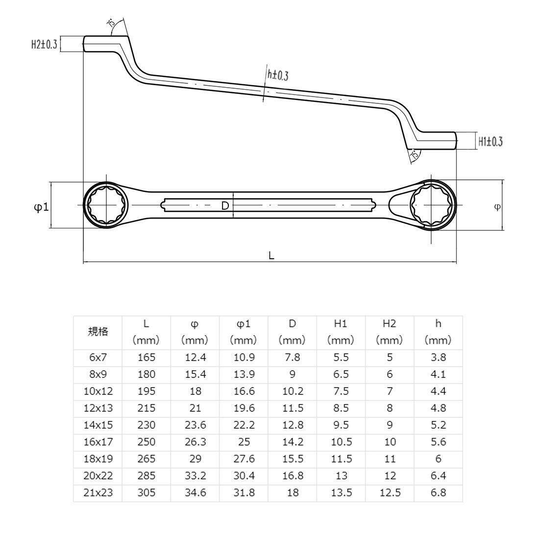 【多用途】機械の組み立て、設備、配管、自転車のメンテナンスなどによく使われています。オフセットの形で、特に凹んだ所のボルト・ナットの着脱に適合します。