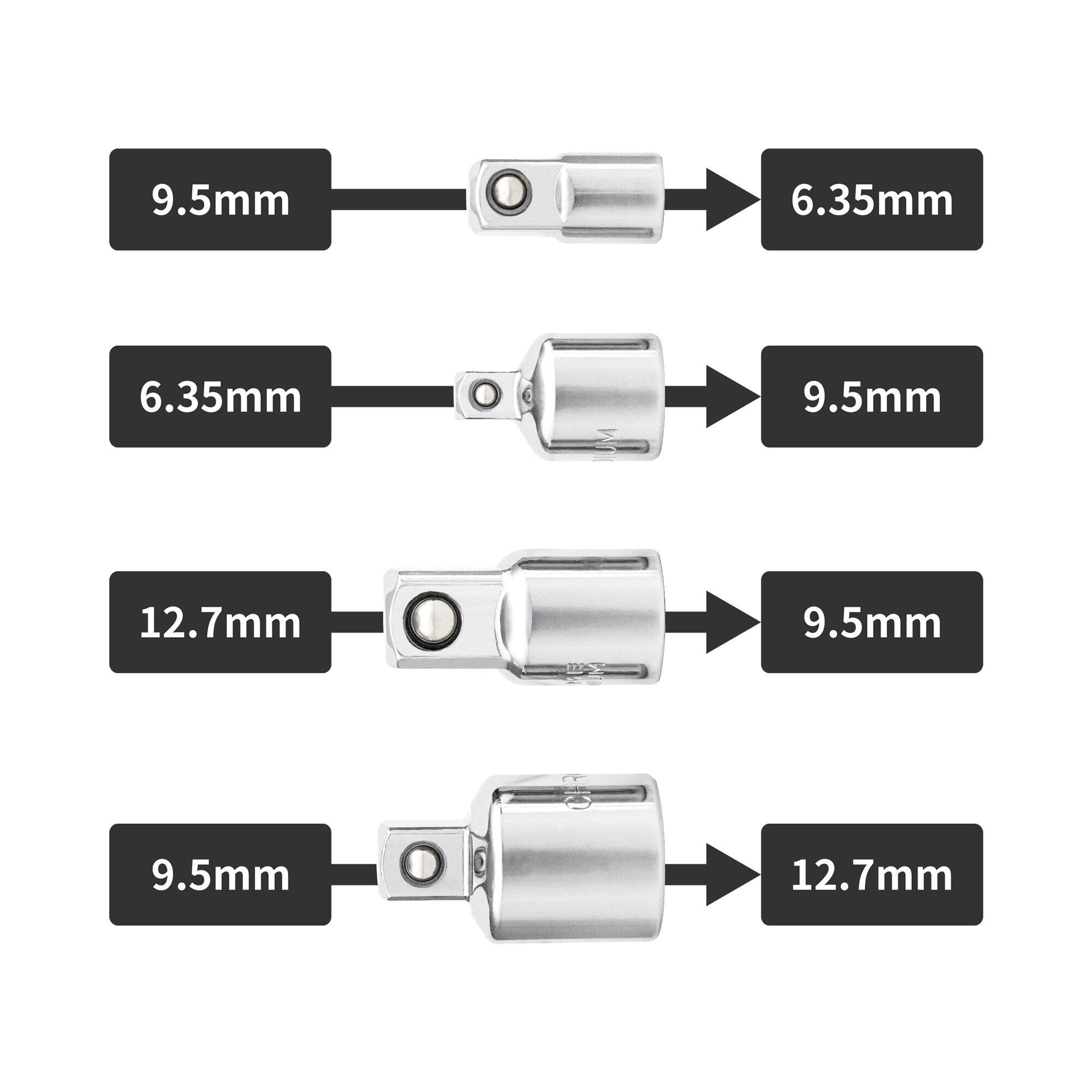 セット内容:凹6.35mm×凸9.5mm、凹9.5mm×凸6.35mm、凹9.5mm×凸12.7mm、凹12.7mm×凸9.5mm