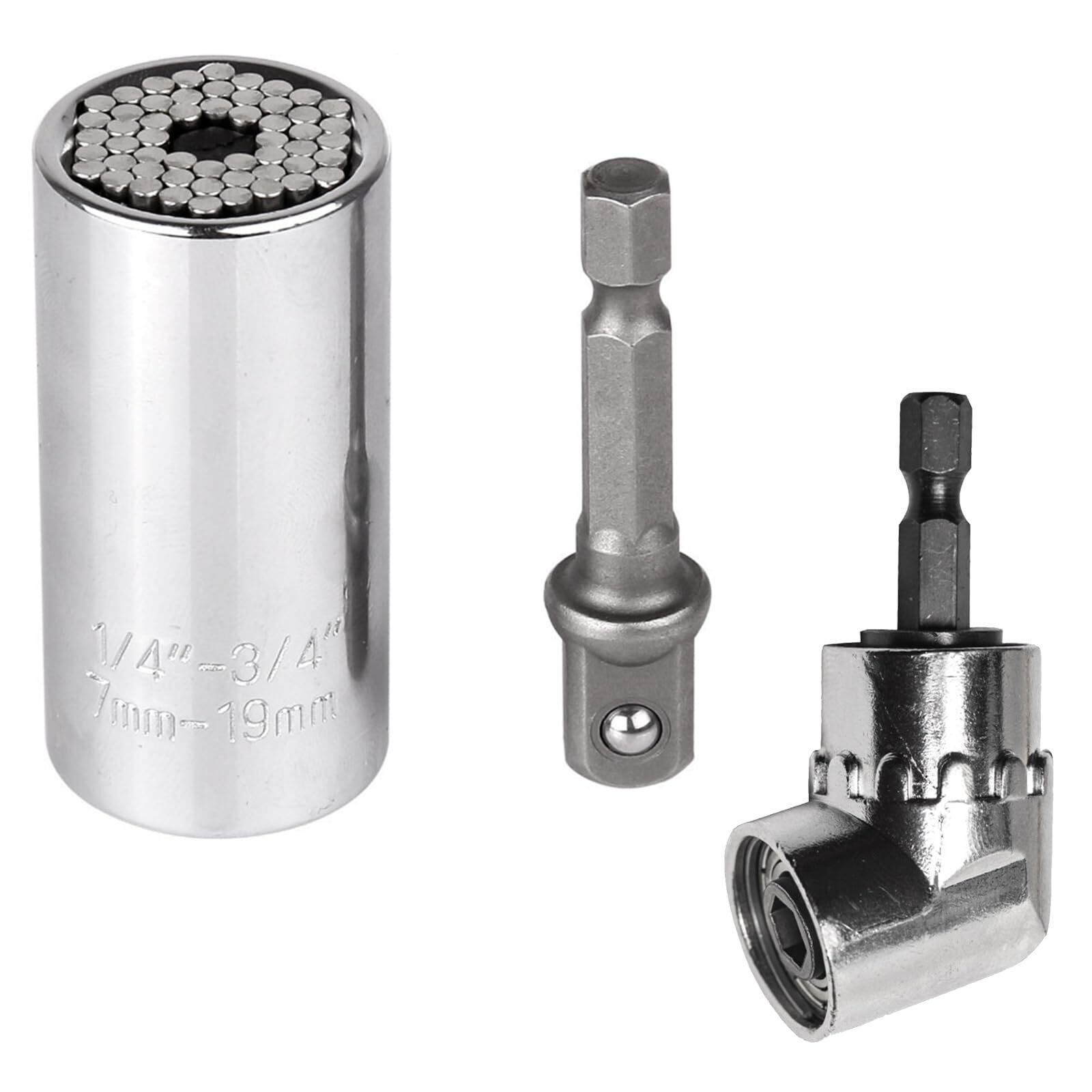 DFsucces ユニバーサルソケット & L型 ソケットレンチ 3点セット 7~19mm(1/4~3/4インチ)対応 万能ソケット 54本スチールのピン内蔵 多機能 3/8インチ DIY ドリルアダプター付き 作業工具 | KSショップ