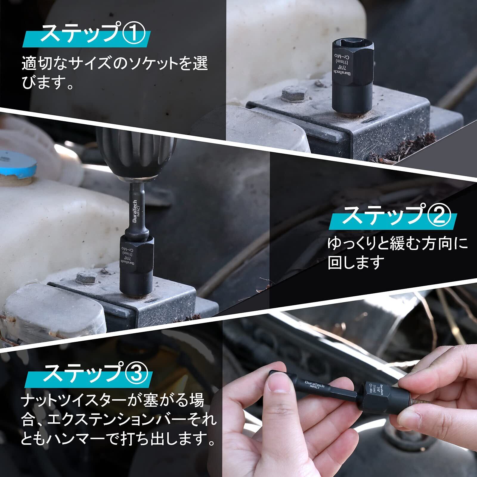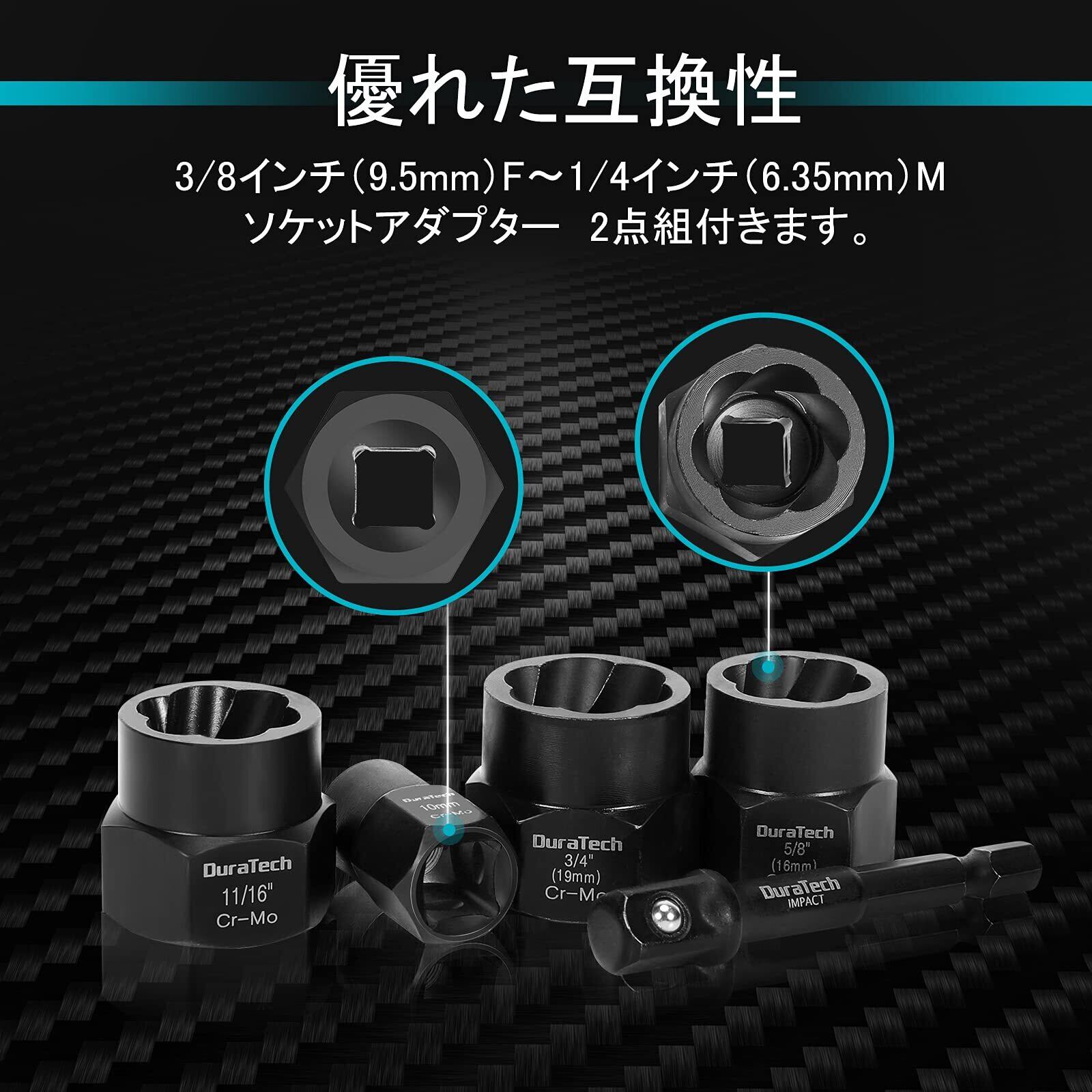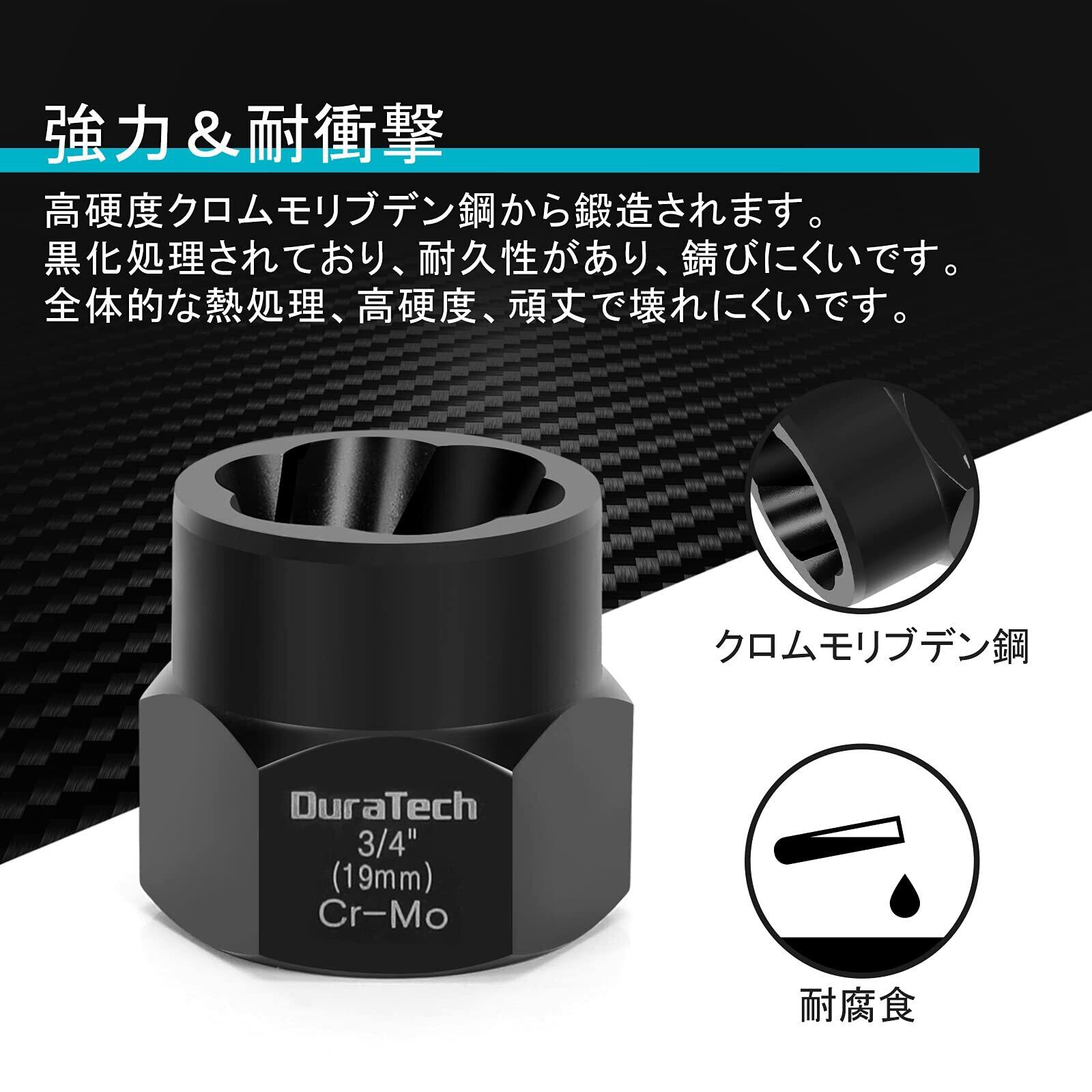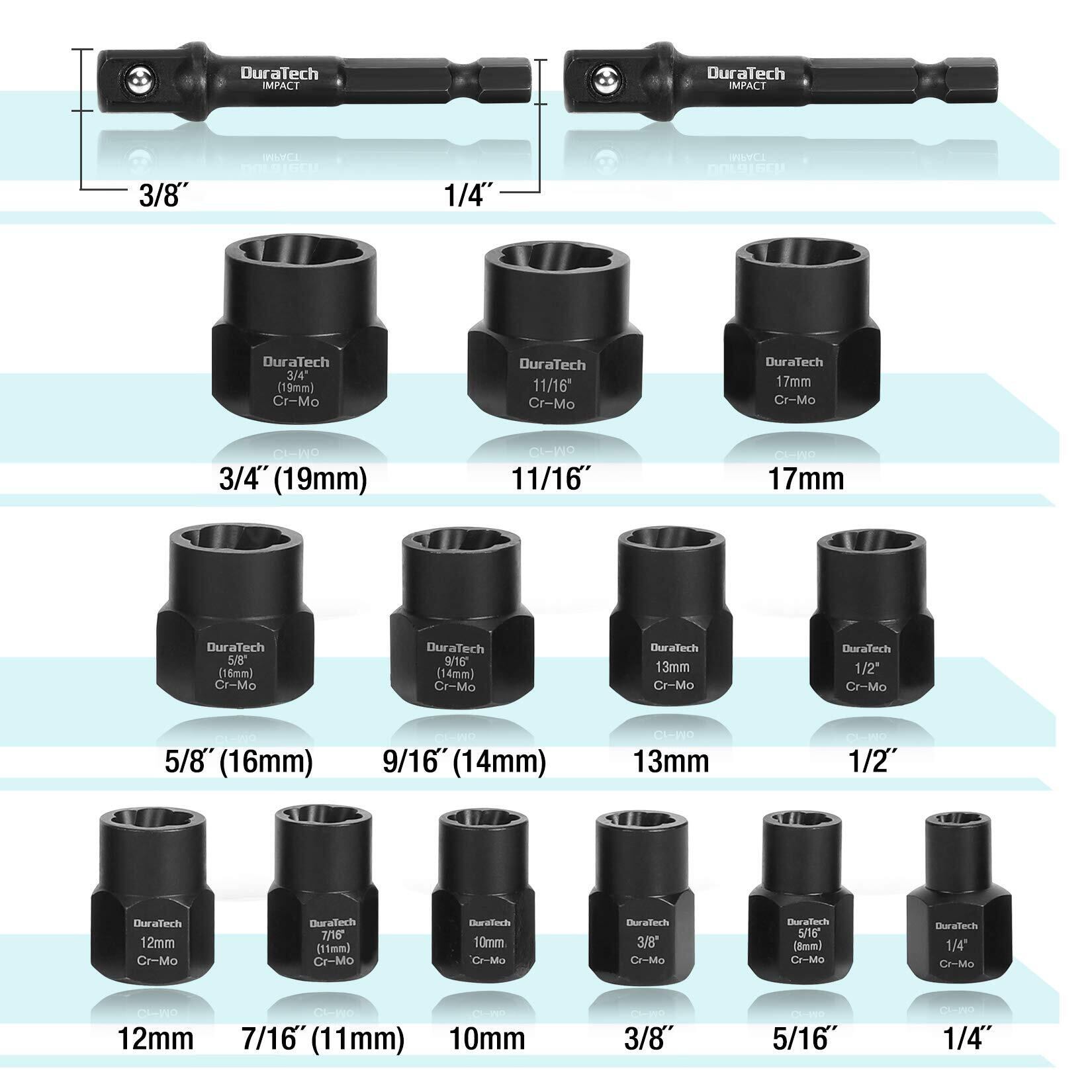 DURATECH ナット抽出ソケットセット ナットツイスター 壊れたボルト抽出器 ナットリムーバー 潰れたボルト ナットエクストラクターソケット バイク 車修理 15点セット