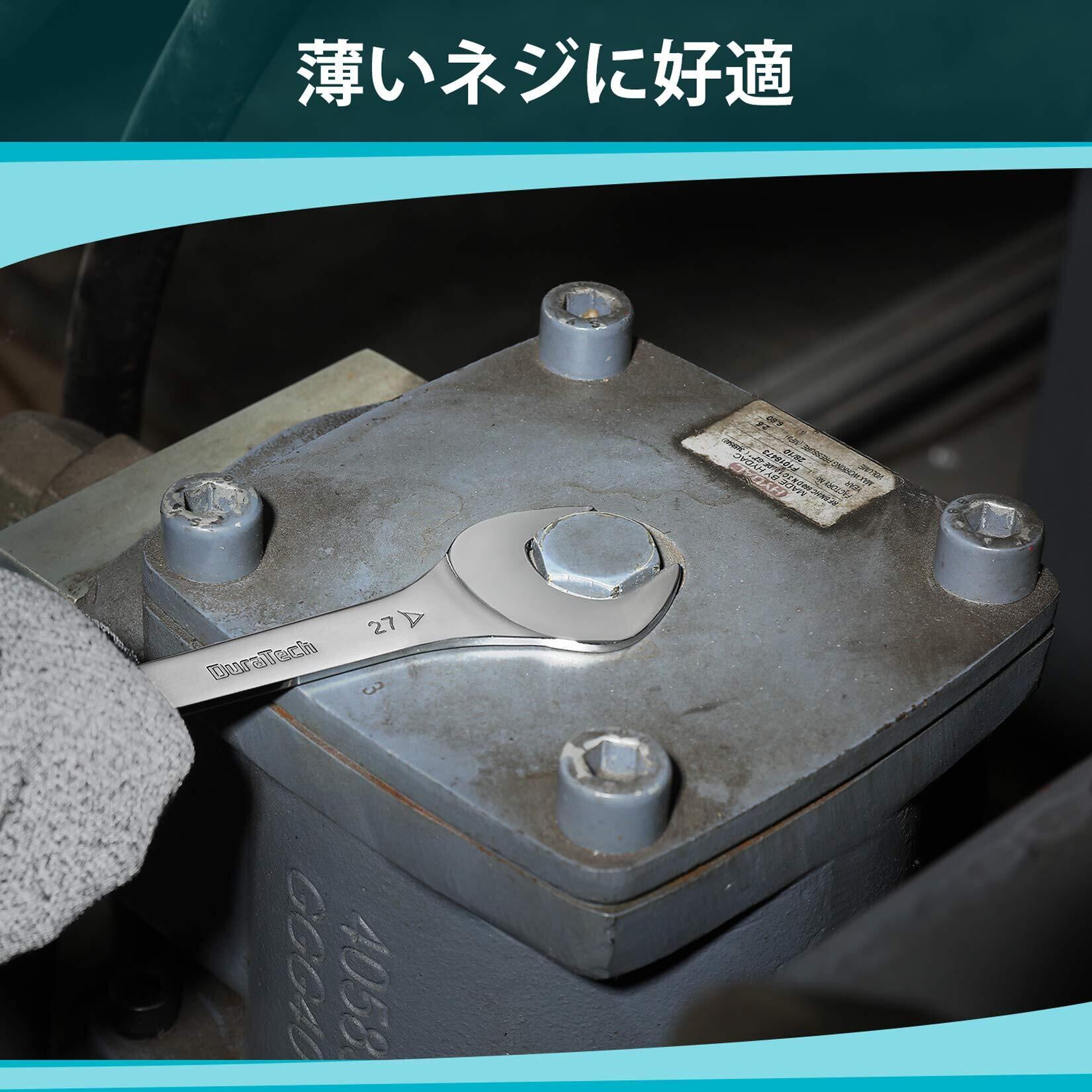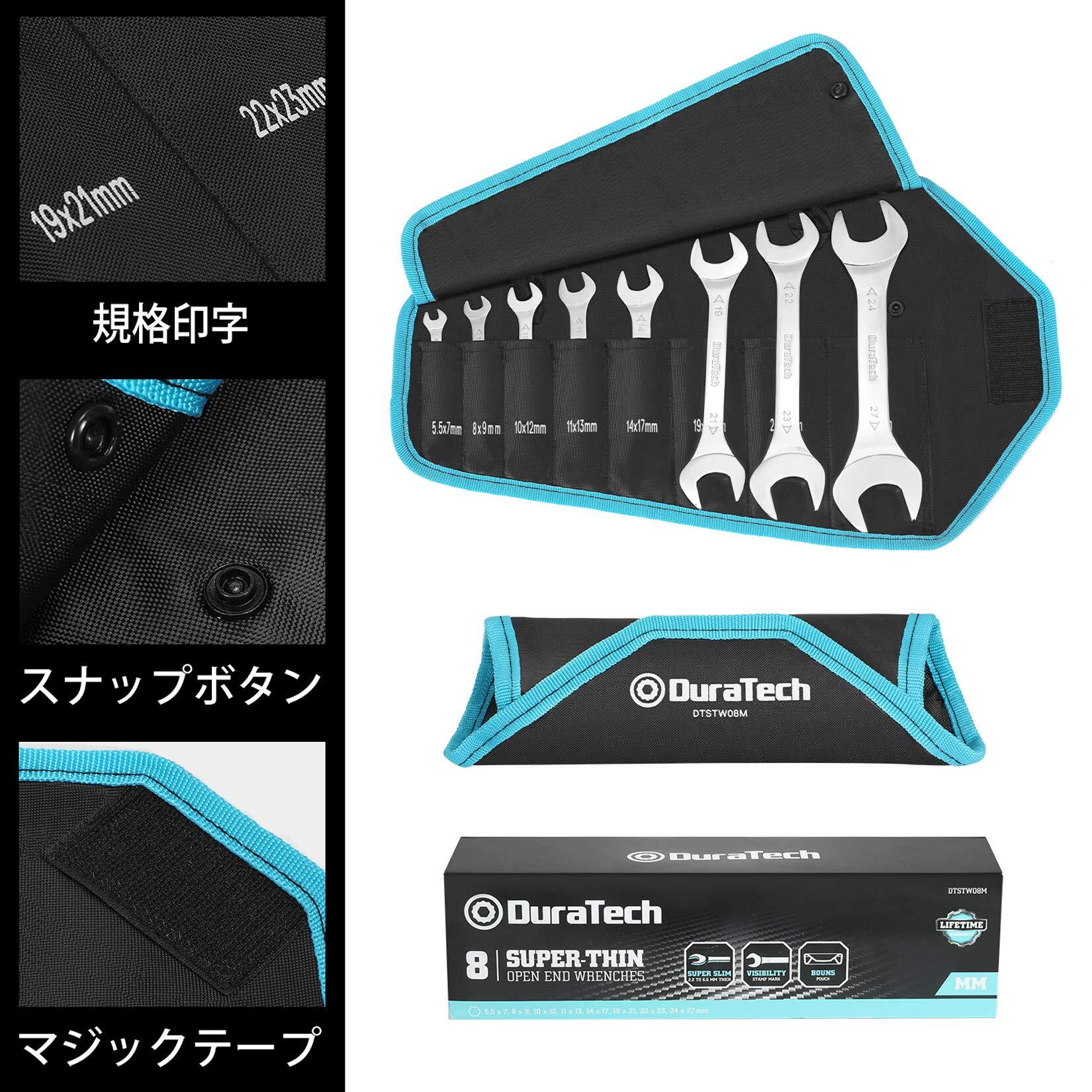 DURATECH 極薄スパナ 薄型 スパナセット 8本組 ショートタイプ 両口 ミニ レンチセット 厚さ3mm 5.5~27mm 鏡面仕上げ済 収納袋付