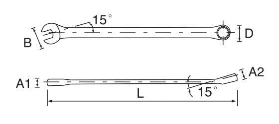 スパナ部厚み(A1;mm):7.0、メガネ部厚み(A2;mm):9.0