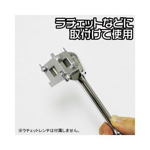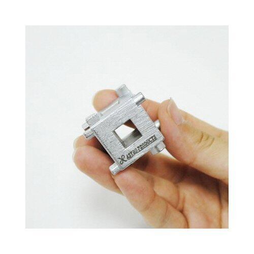 ●主にリアディスクブレーキのピストンの回し戻しに使用します。●キューブから出ている突起をピストンの溝にはめ込み固定し、簡単にピストンを回転させることができるようになります。●ブレーキキャリパーのピストンが回し戻すタイプに対応するピストン押し戻しツールです。