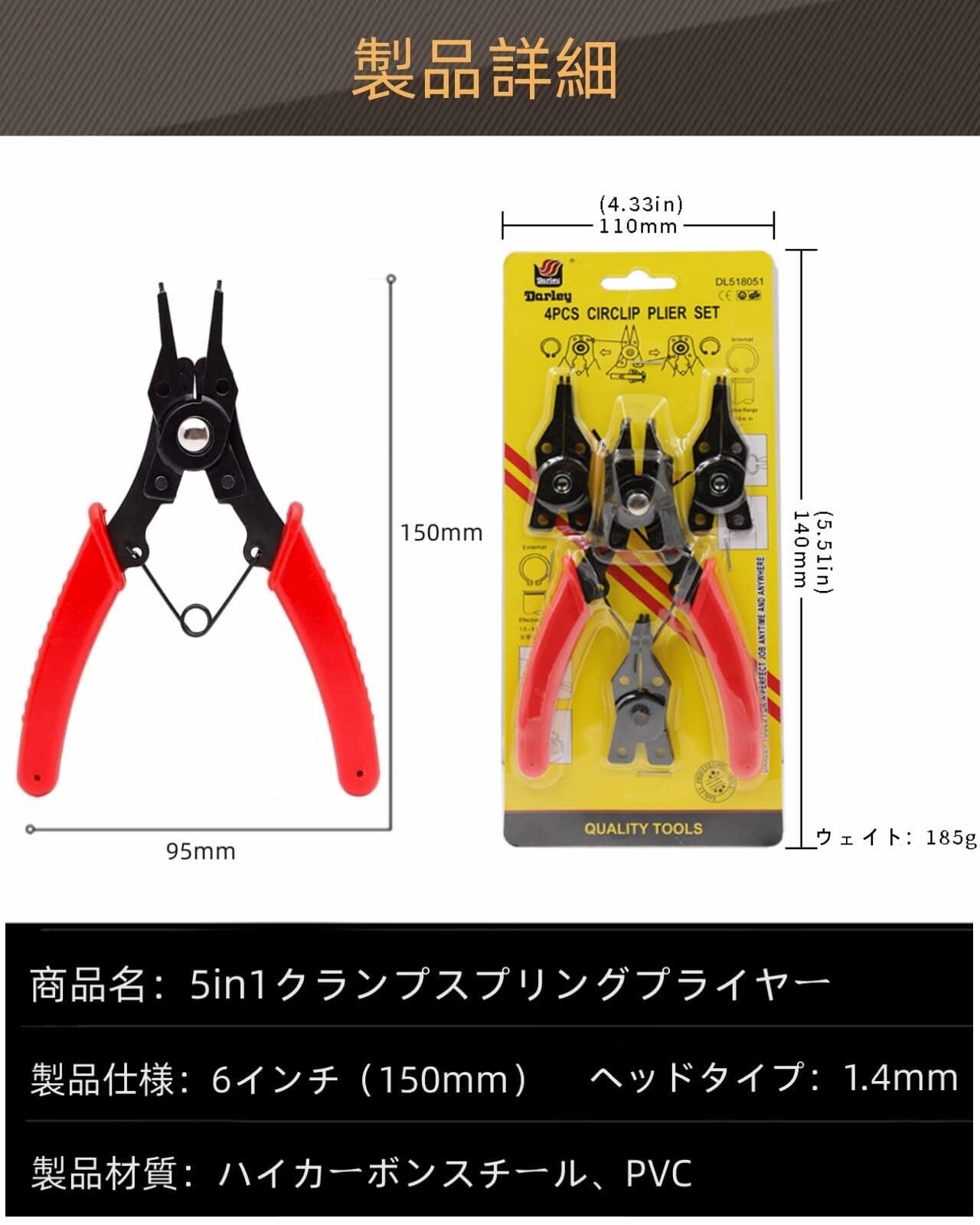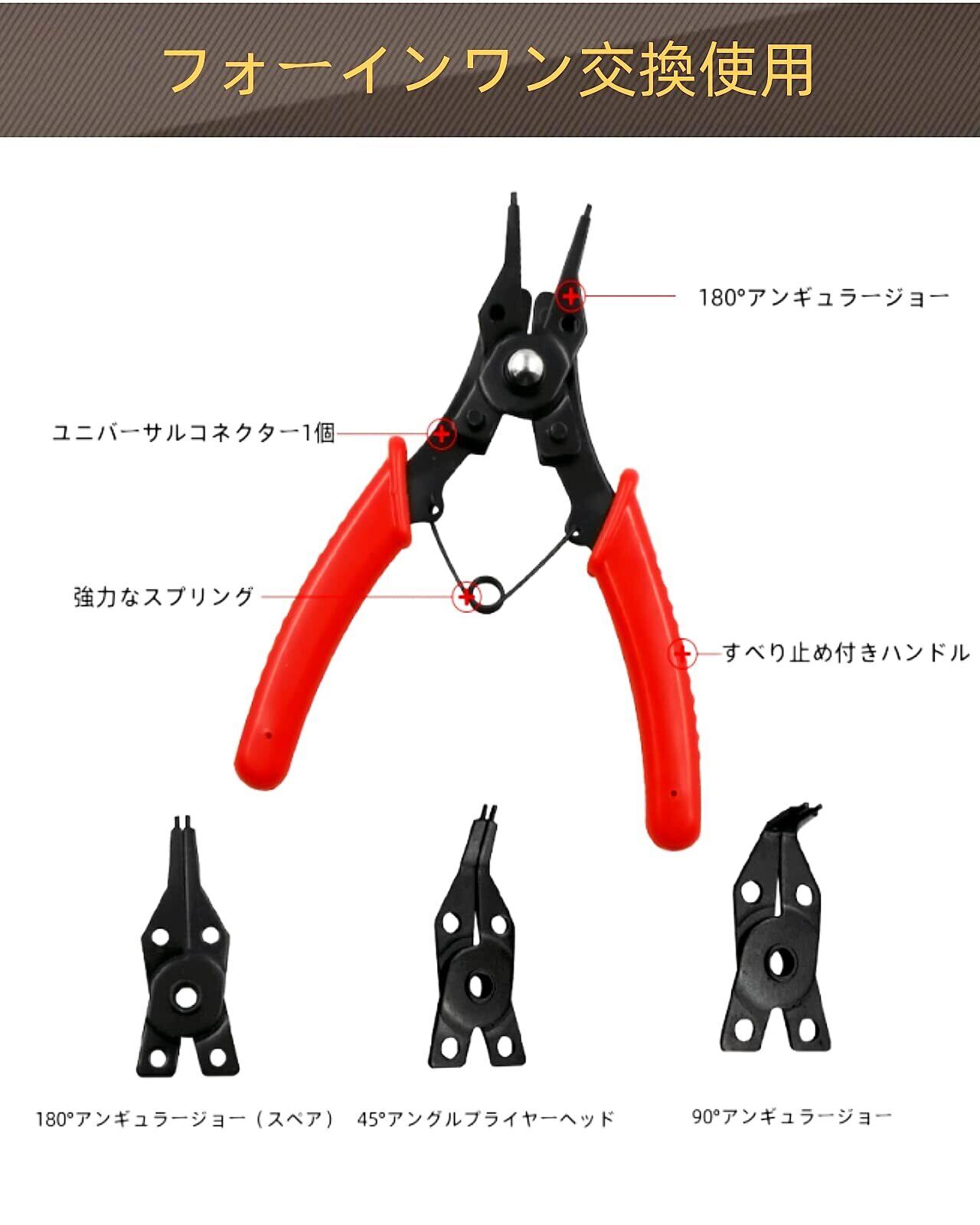 コンビスナップリングプライヤー 4本セット【180度・90度・45度、6通りの使い方ができます 3種類の用ヘッドで】 軸・穴兼用セット (レッド)