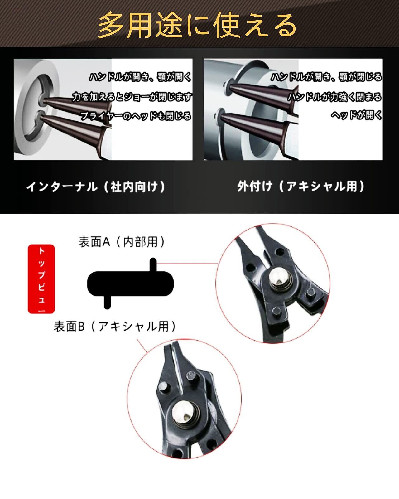 商品用途・使用方法 スナップリングの着脱、シャフトやベアリングの調整、様々な角度での作業