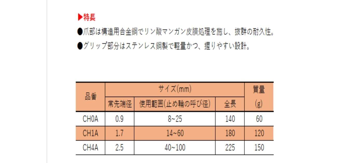 ●爪部は構造用合金鋼でリン酸マンガン被膜処理を施し、優れた耐久性です。