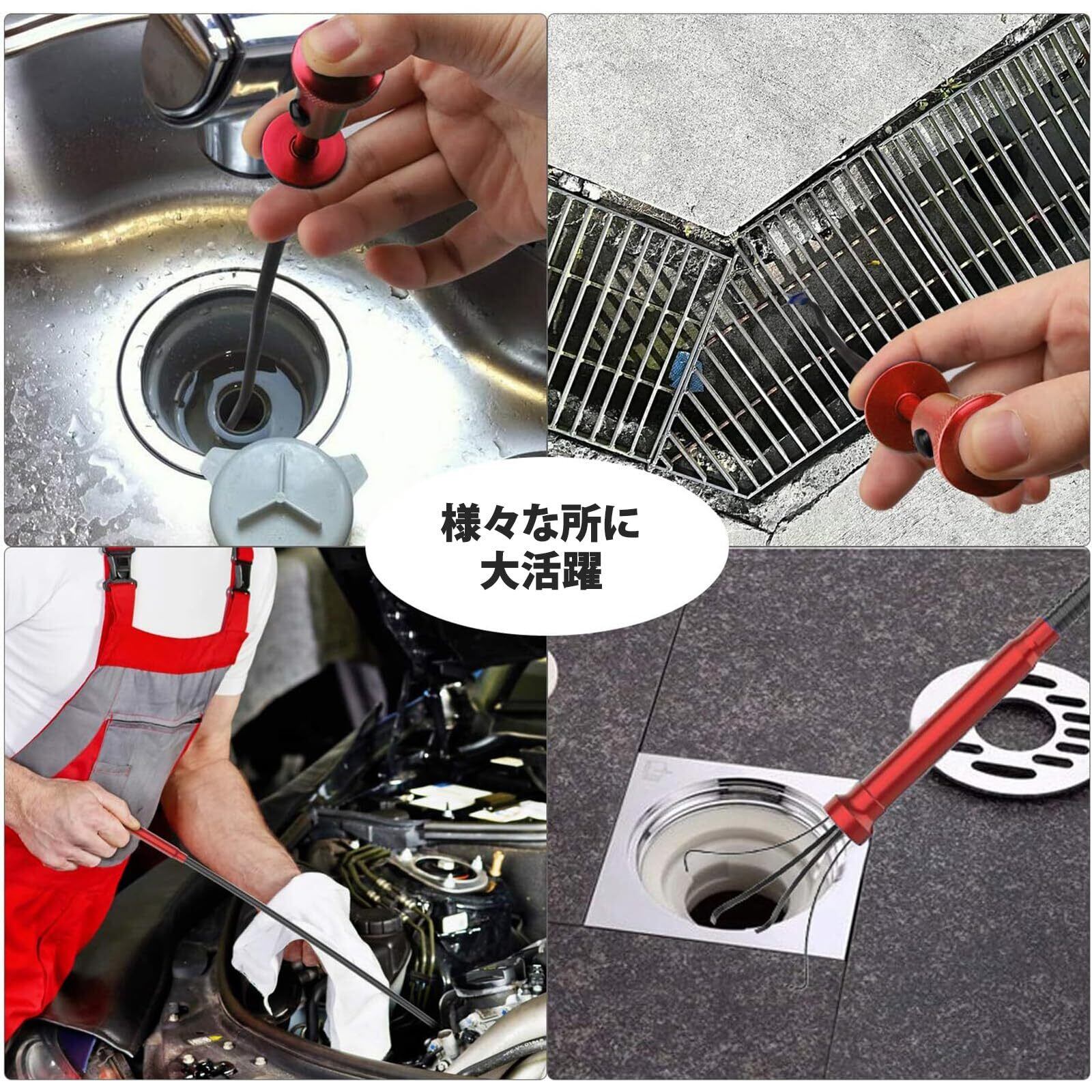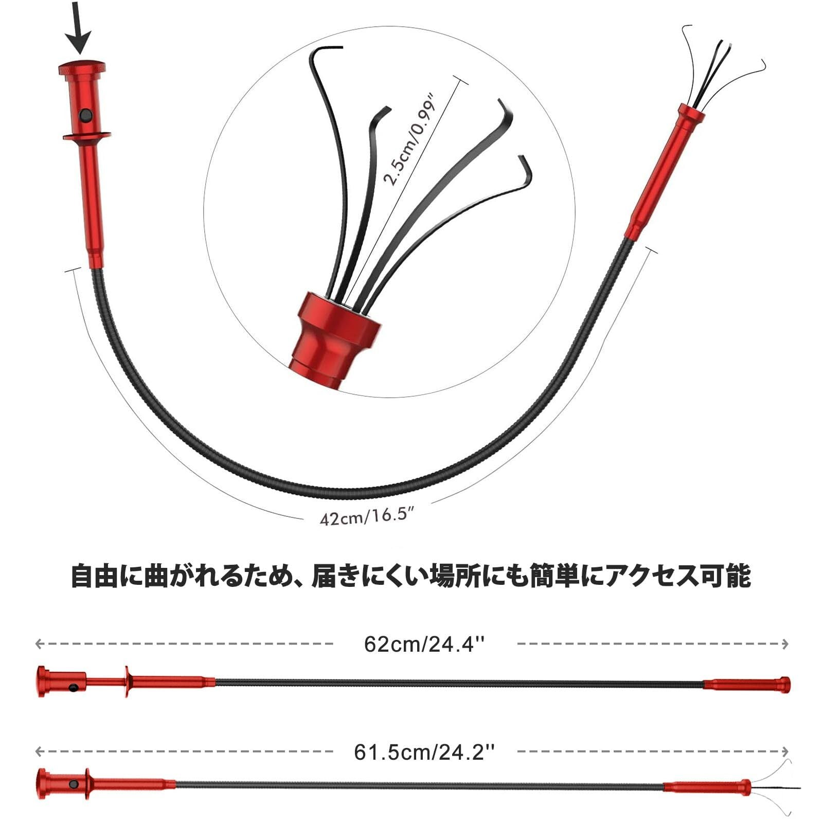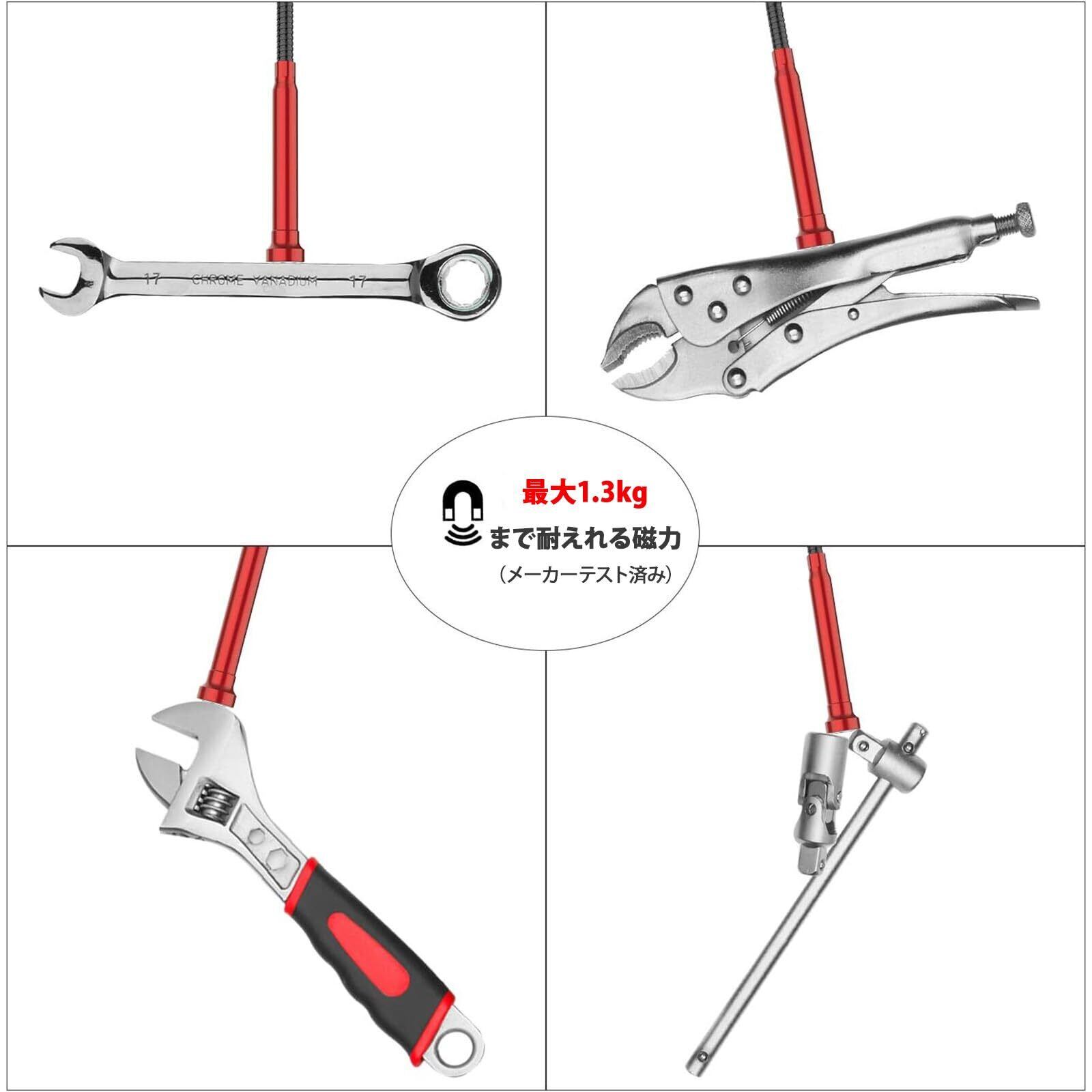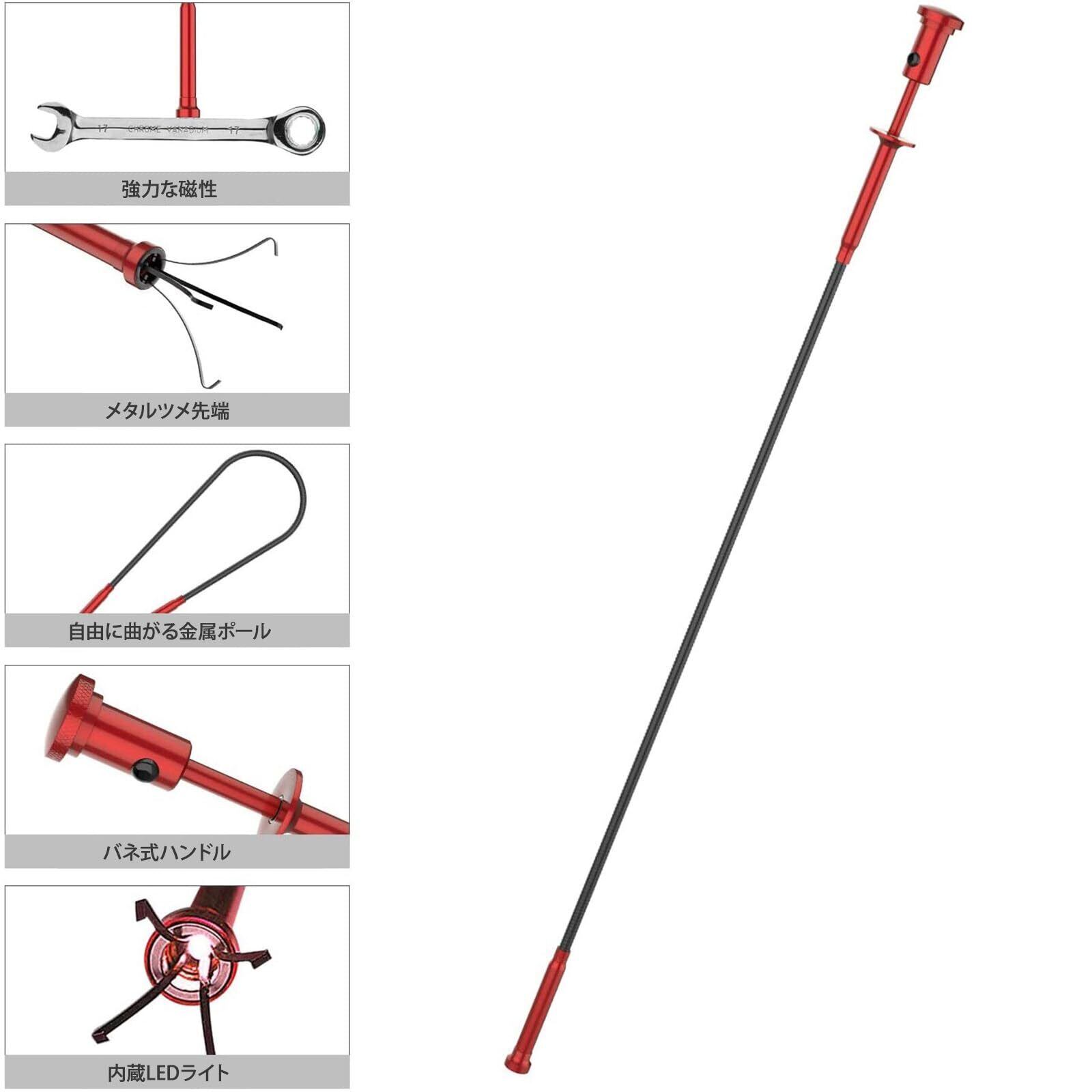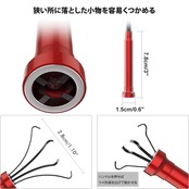 Housolution ピックアップツールLEDライト付 マグネット4本爪 自在に曲がる 工具 ゴミ 髪の毛 掃除 詰まり除去 Red