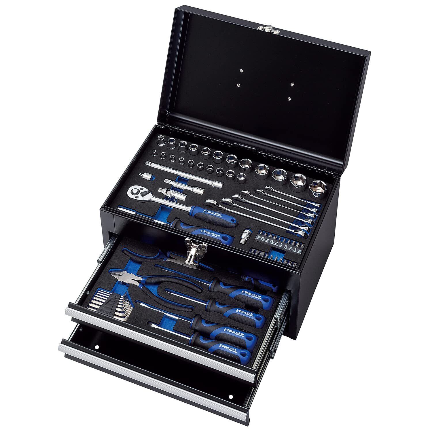 イーバリュー(E-Value) 整備工具セット ツール70点+ツールチェスト ブラック EVAマットトレー仕様 各種メンテナンス対応 バイク 自動車 DIY 日曜大工向け EST-2270BK | KSショップ