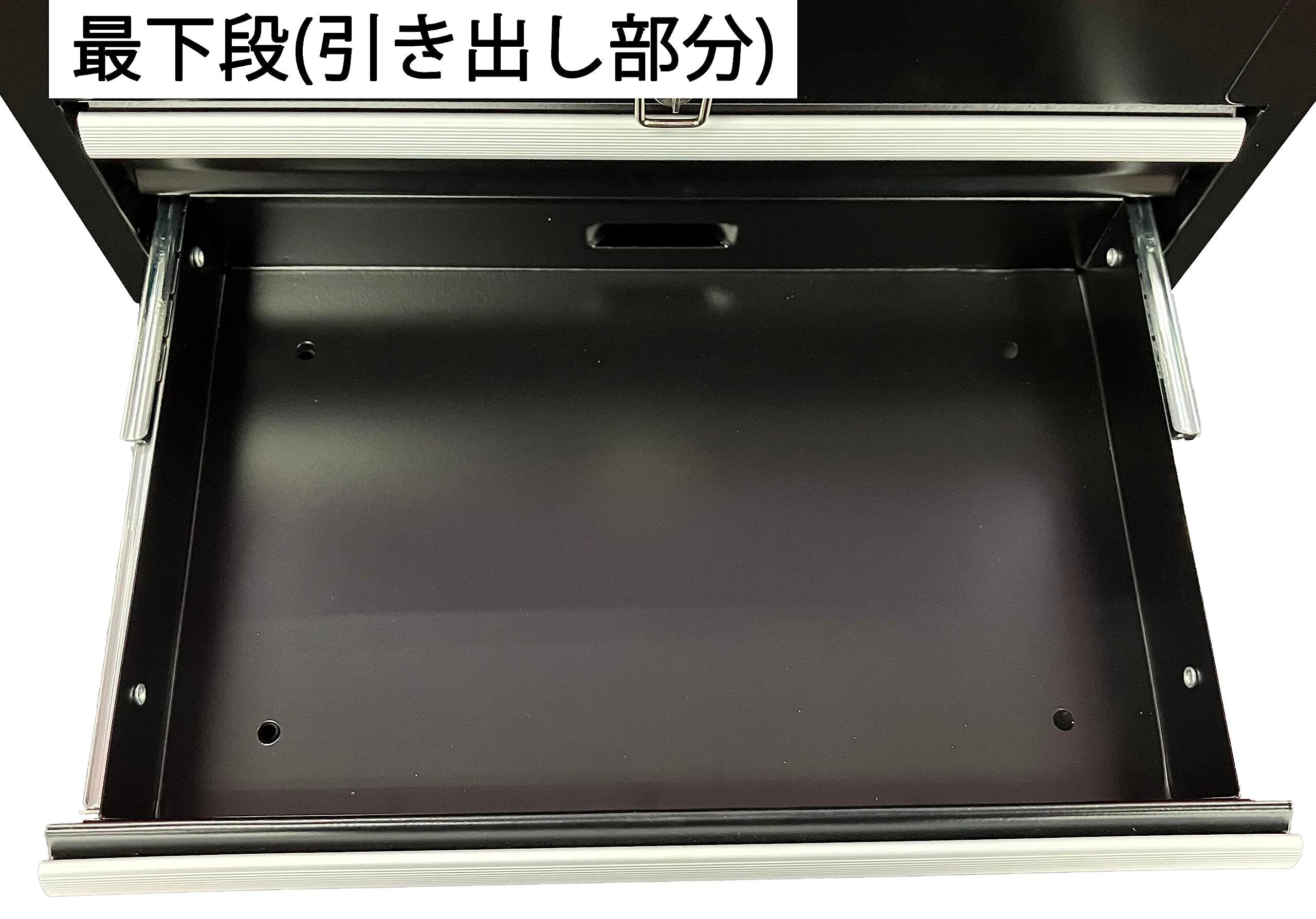 ※全段の引き出しを最後まで閉じた後、上部フタを閉じると引き出しのロックが掛かります。(フタのロックは止め金具をして下さい。)