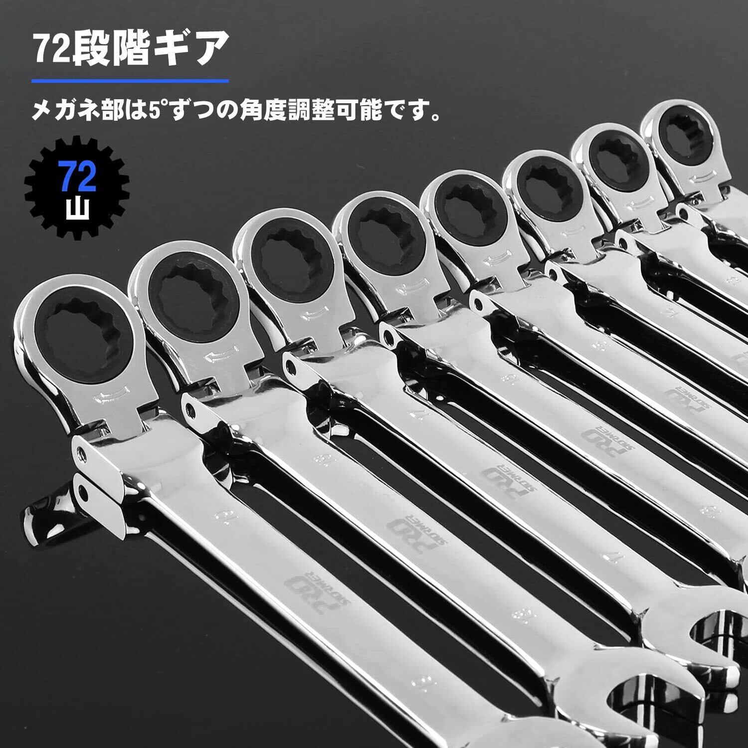 サイズ:72ギアラチェットコンビネーションレンチセット。14本セットサイズ:6mm、7mm、8mm、9mm、10mm、11mm、12mm、13mm、14mm、15mm、16mm、17mm、18mm、19mm