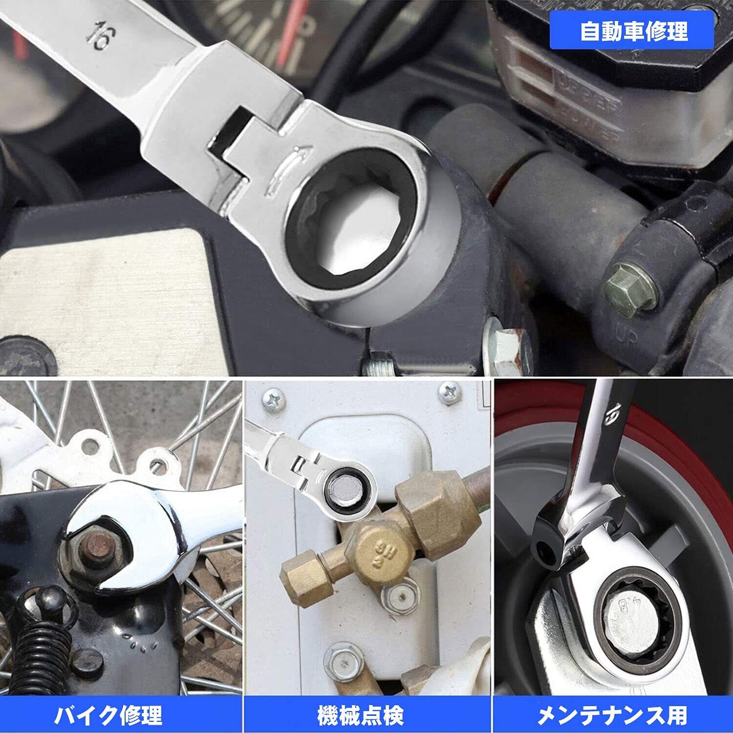 Prostormer フレックスラチェットレンチ 角度調整可能 72ギア ラチェットコンビネーションレンチセット 6-19mm 14本組 自動車修理 車メンテナンス 組み立て DIY 収納ケース付き | KSショップ