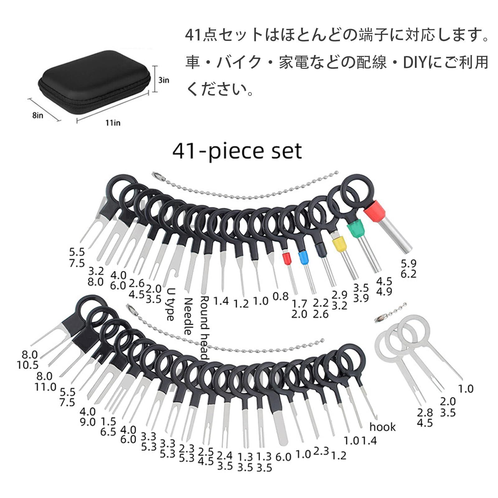 【互換性あり】カプラーやコネクターから配線端子を外すための工具です.各種サイズや配線圧着の種類に対応するために41点セットになって、さまざまな種類の機器のニーズを満たすことができます.そして、それは使いやすく、持ち運びが簡単です。41点セットはほとんどの端子に対応します。車・バイク・家電などの配線・DIYにご利用ください。