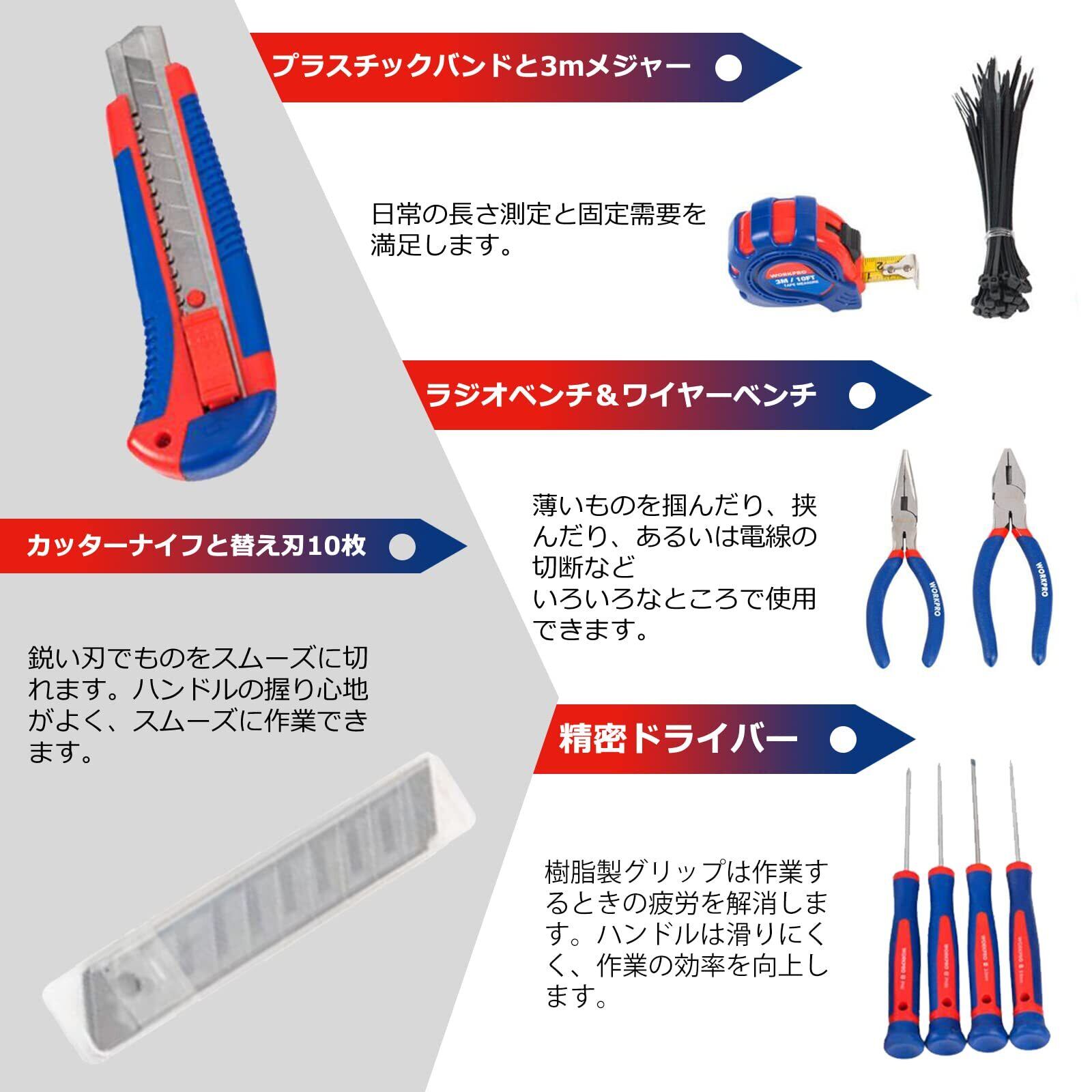 WORKPRO ホームツールセット 工具セット ガレージツールセット 日常ツールキット 日曜大工 家庭修理 家具の組み立て 住まいのメンテナンス用 収納バッグ付き