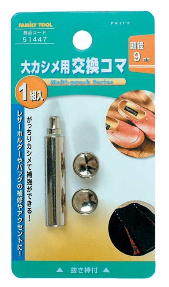 セット内容:大カシメ用コマ/頭径9mm×1組、抜き棒×1本