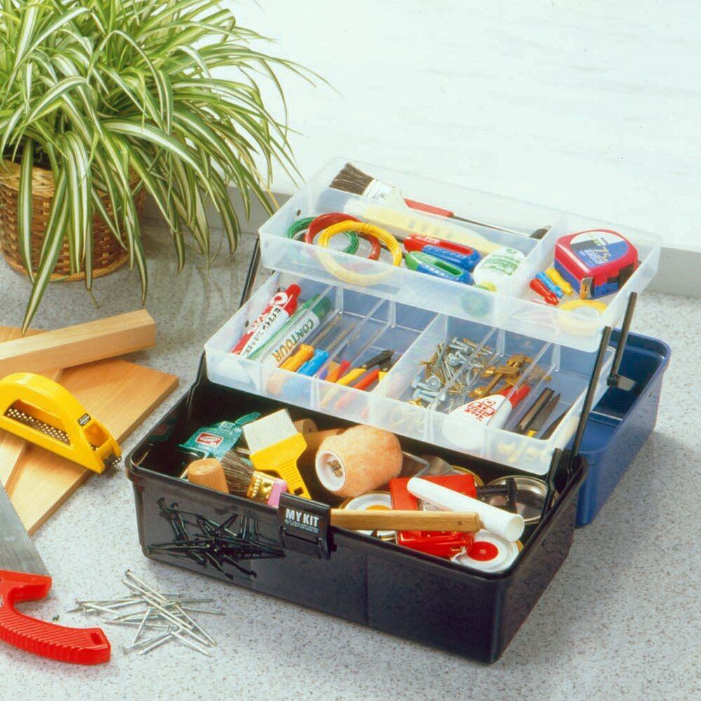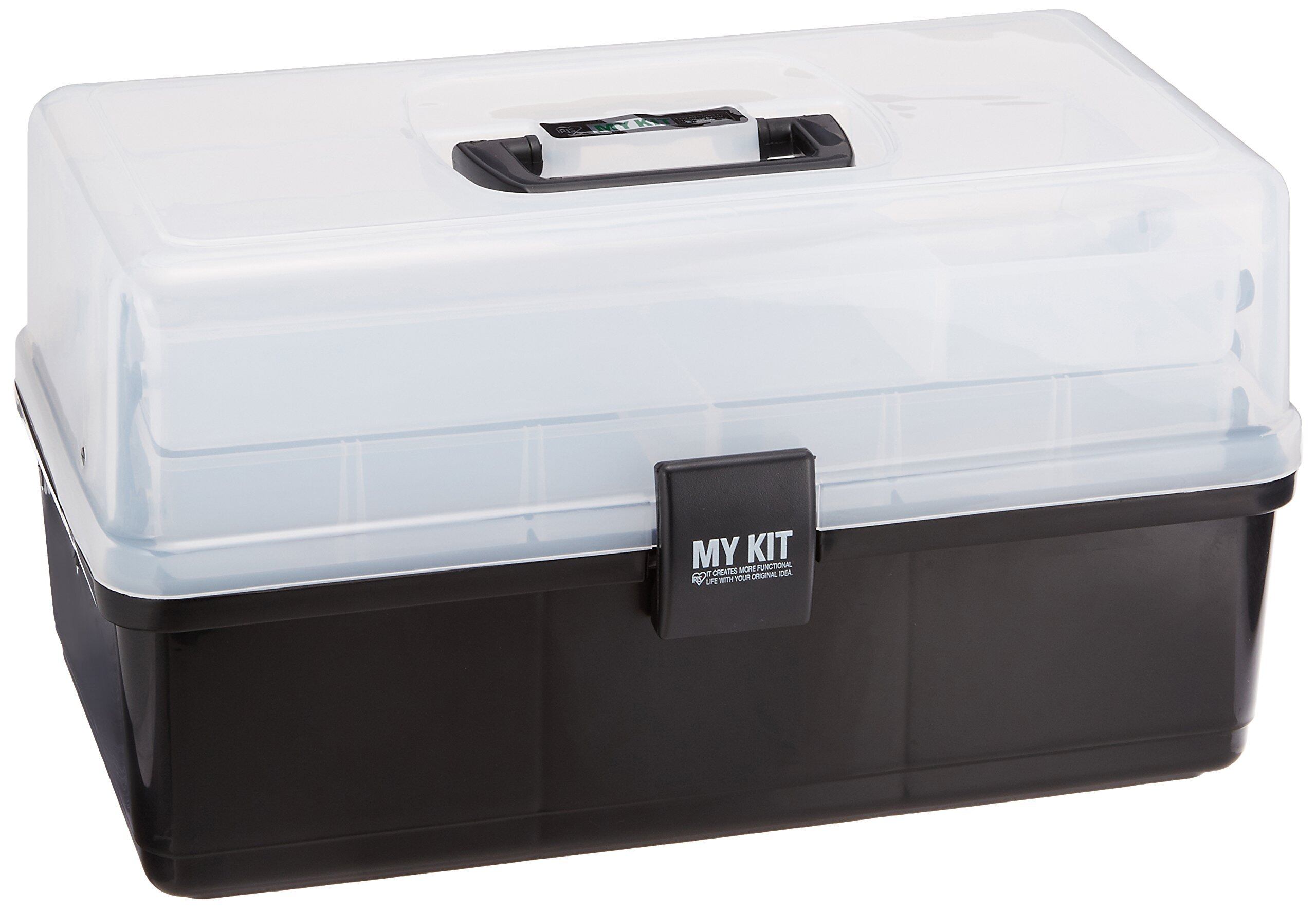 アイリスオーヤマ マイキット 工具収納 工具箱 ケース クリアブラック 万能ケース 収納ボックス ツールボックス DIY アウトドア キャンプ 小物入れ 2段式トレー
