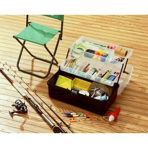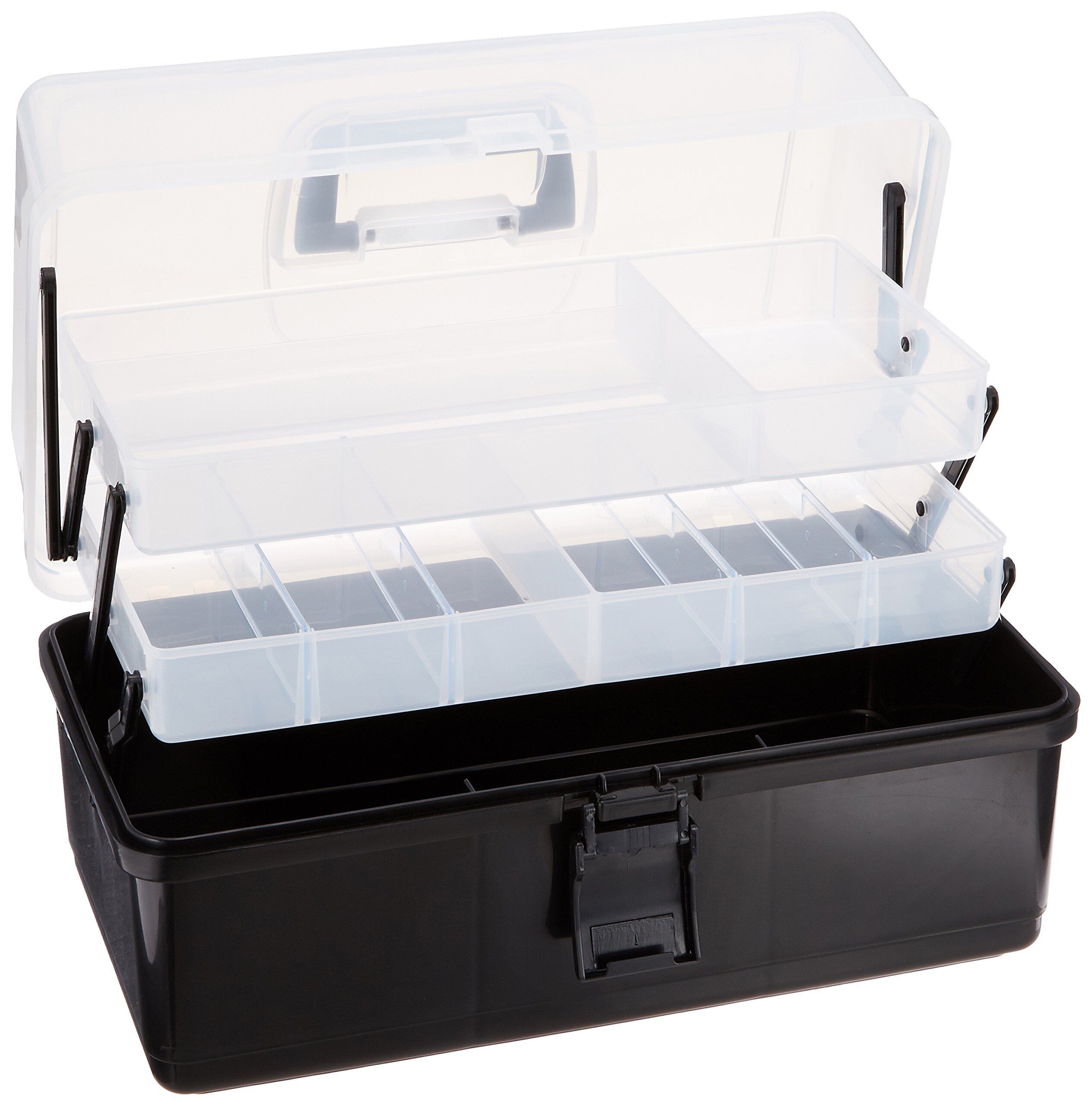 多目的に使える万能ケースです。フタの開閉に連動する2段式トレーが付いていて収納力に優れています。