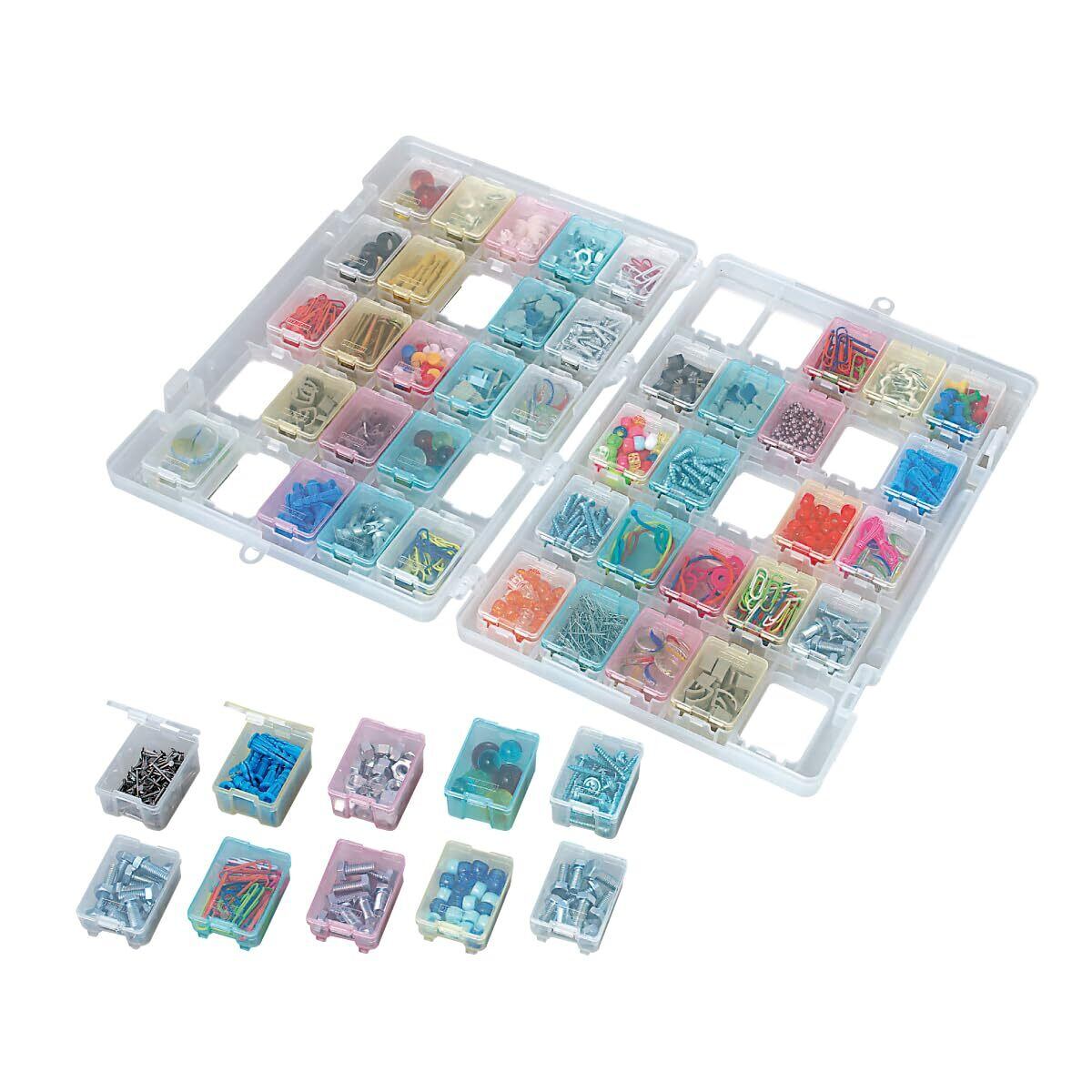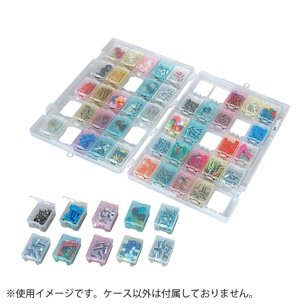 ●透明「なか箱」で中身が一目瞭然●着脱自在の「なか箱」で何種類ものパーツ・小物を収納、整理●フレームから取り出した「なか箱」は小型で、ポケットの中にもすっぽり納まります●薄形ブックタイプなので収納場所を選ばず、本棚にも収納可能●フレームは、収納に便利な吊り下げフック付(切り取り可能)●サイズ:タテ340×ヨコ225×高さ49mm●質量:665g●スケルトンM箱 25個、S箱 25個入