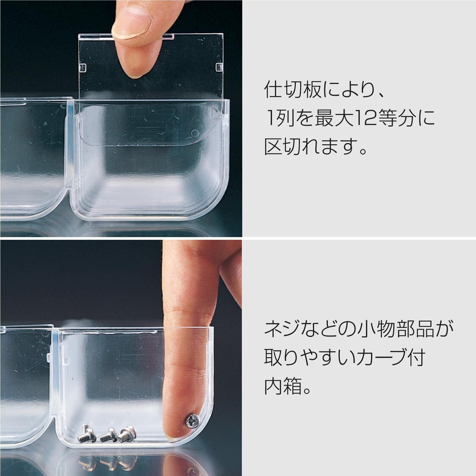 衝撃に強く割れにくいABS製のパーツケース。フタが透明で内容物が一目瞭然。積み重ねても使用できます。